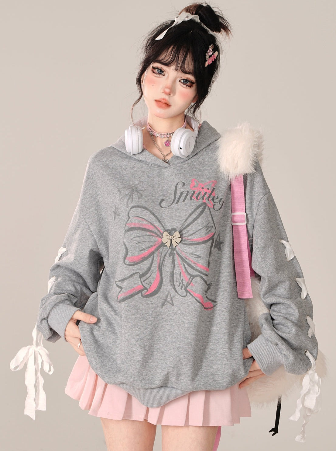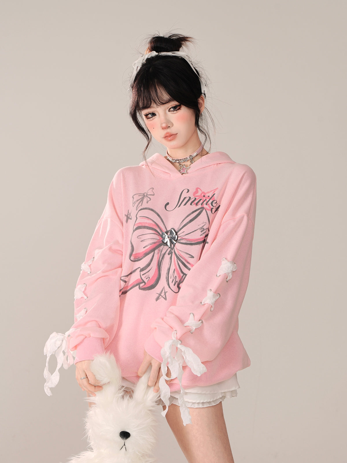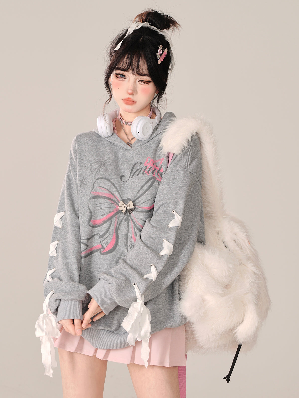 Lockerer Parka mit Kapuze und Schnürung im Armband-Design mit Hasenmotiv