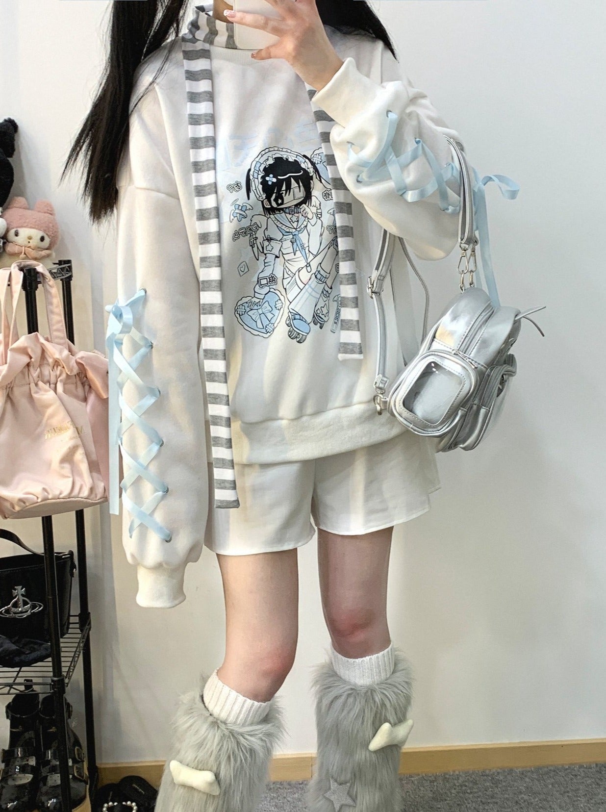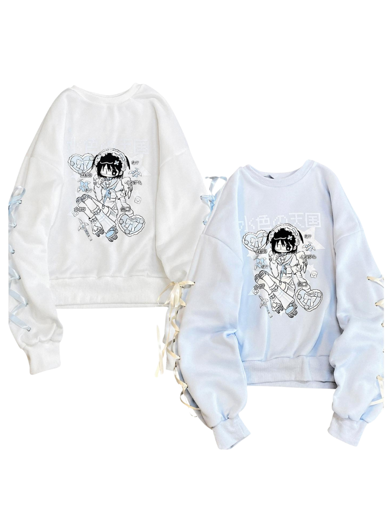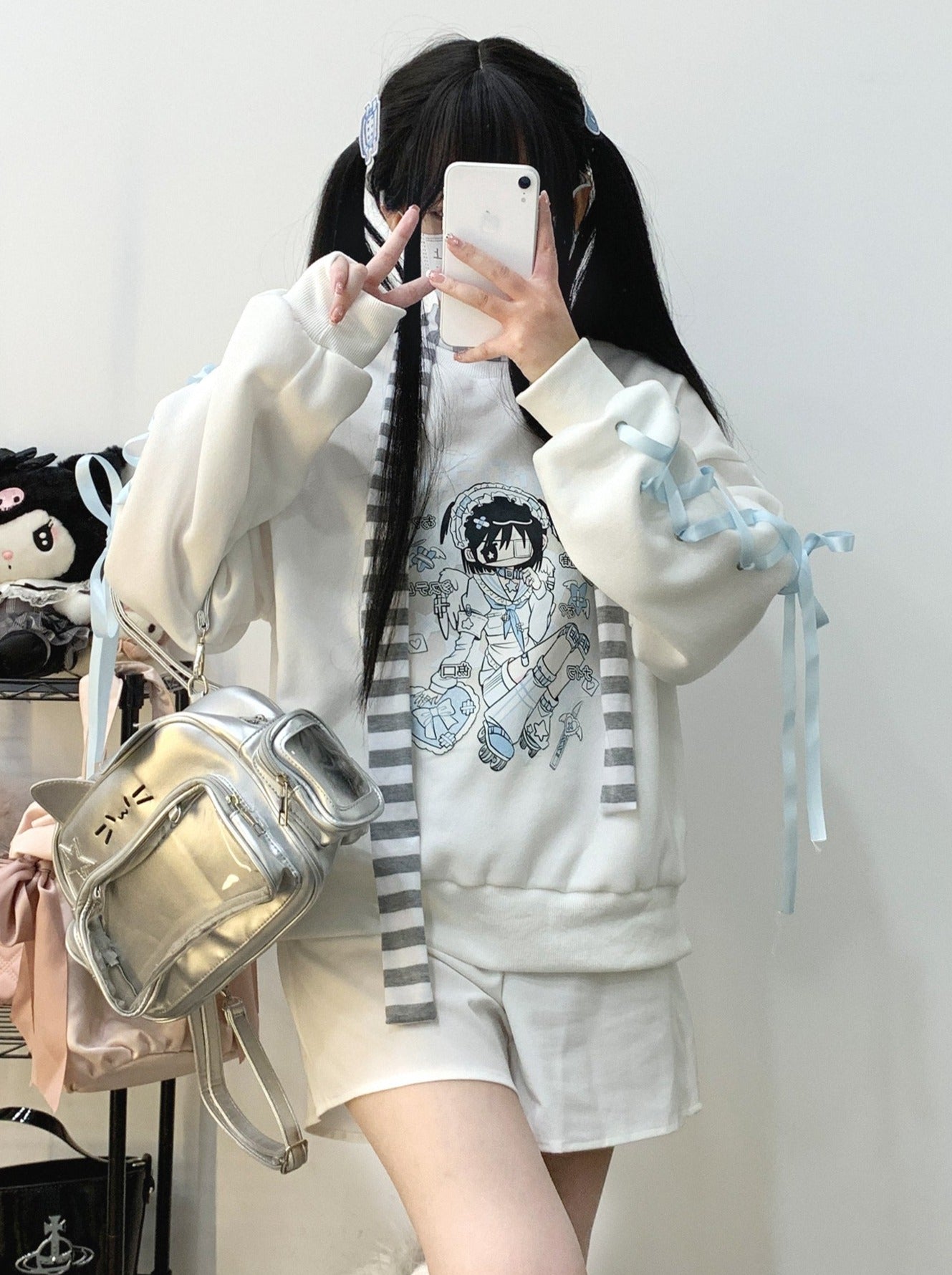 Blau-weißes Old School Lolita Fashion Kleid mit Schleife und Details, JSK-Set