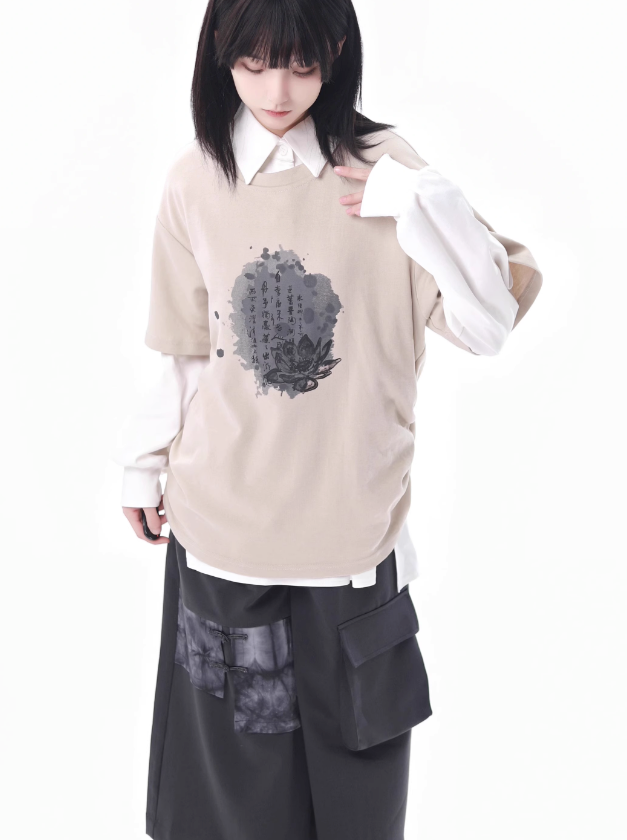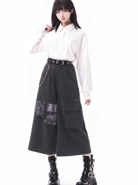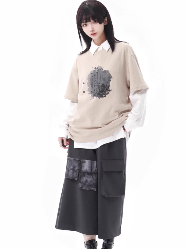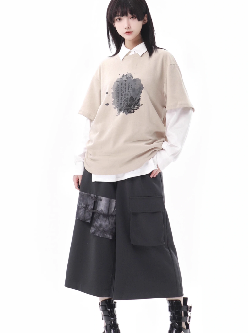 Schnürung + Ärmel + Top Rock Hose Beige Unregelmäßig Weit