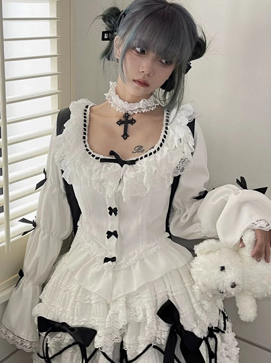 Schwarz-weißes Old School Lolita Fashion Kleid Bowknot Lolita JSK Set