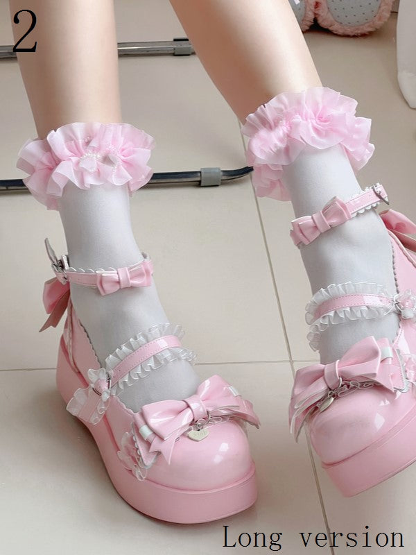 9 Optionen Schwarz/Weiße Wadensocken mit Spitzenrüschenbündchen und Perlen