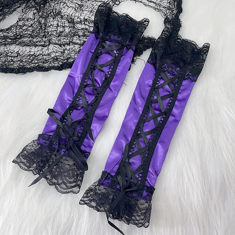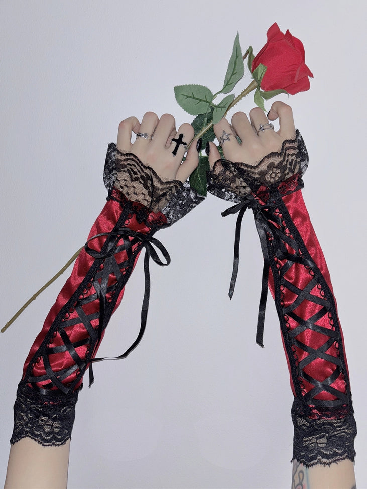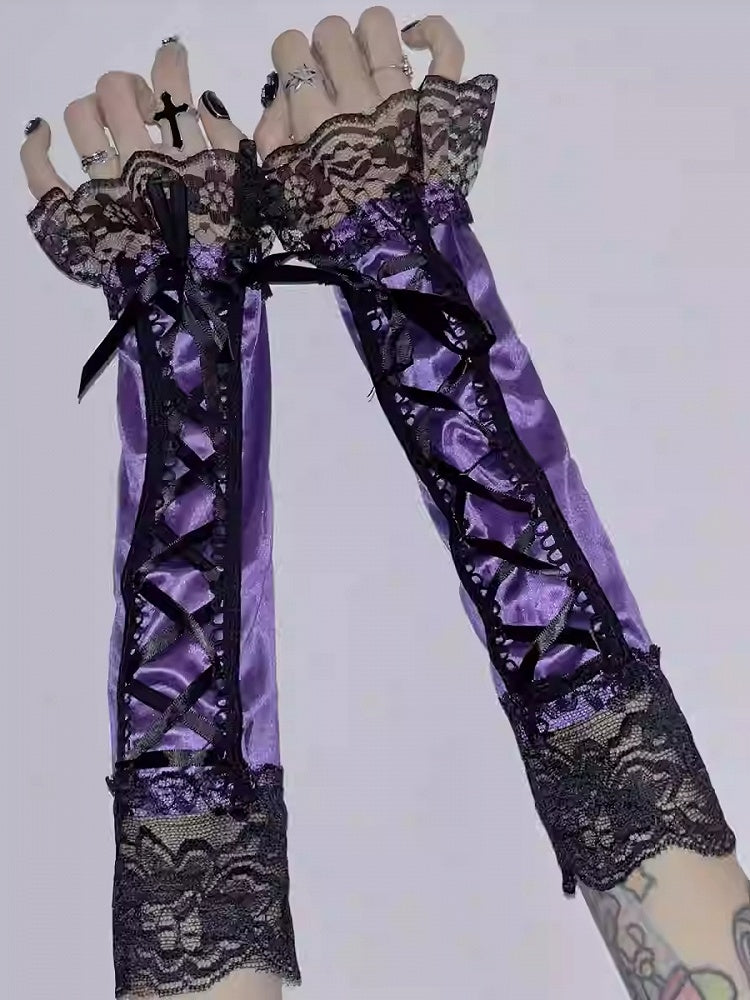 Spitze Y2K Ärmel Schnürbesatz Pink/Schwarz/Lila/Rot Glamouröses Detail