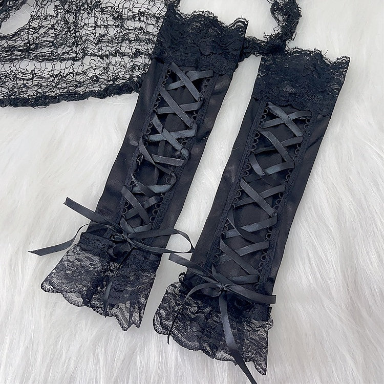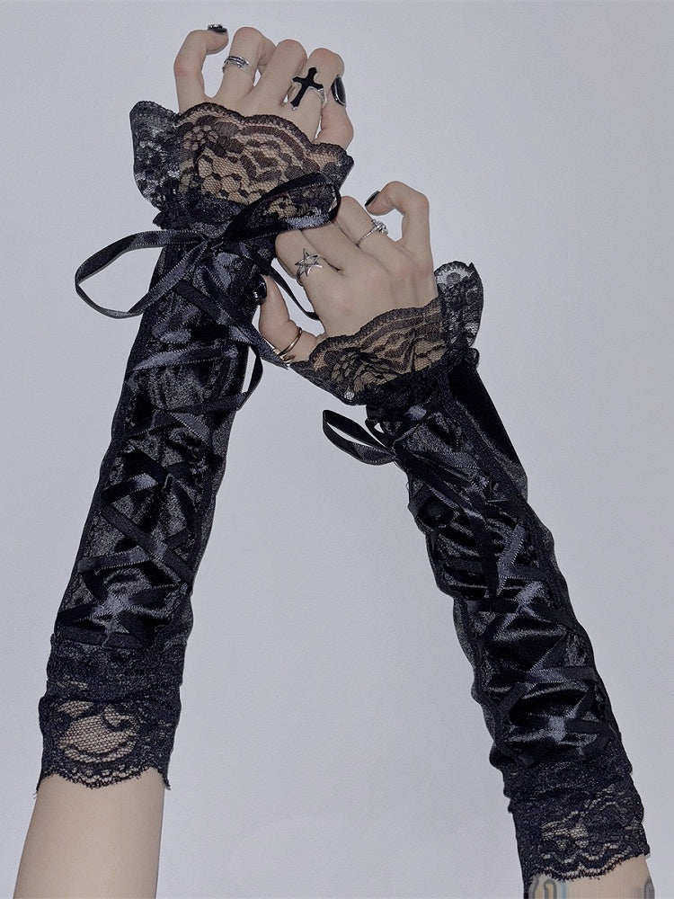 Rosa/Schwarz/Lila/Rot Y2K Glamouröse Ärmel mit Schnürdetail und Spitzenbesatz