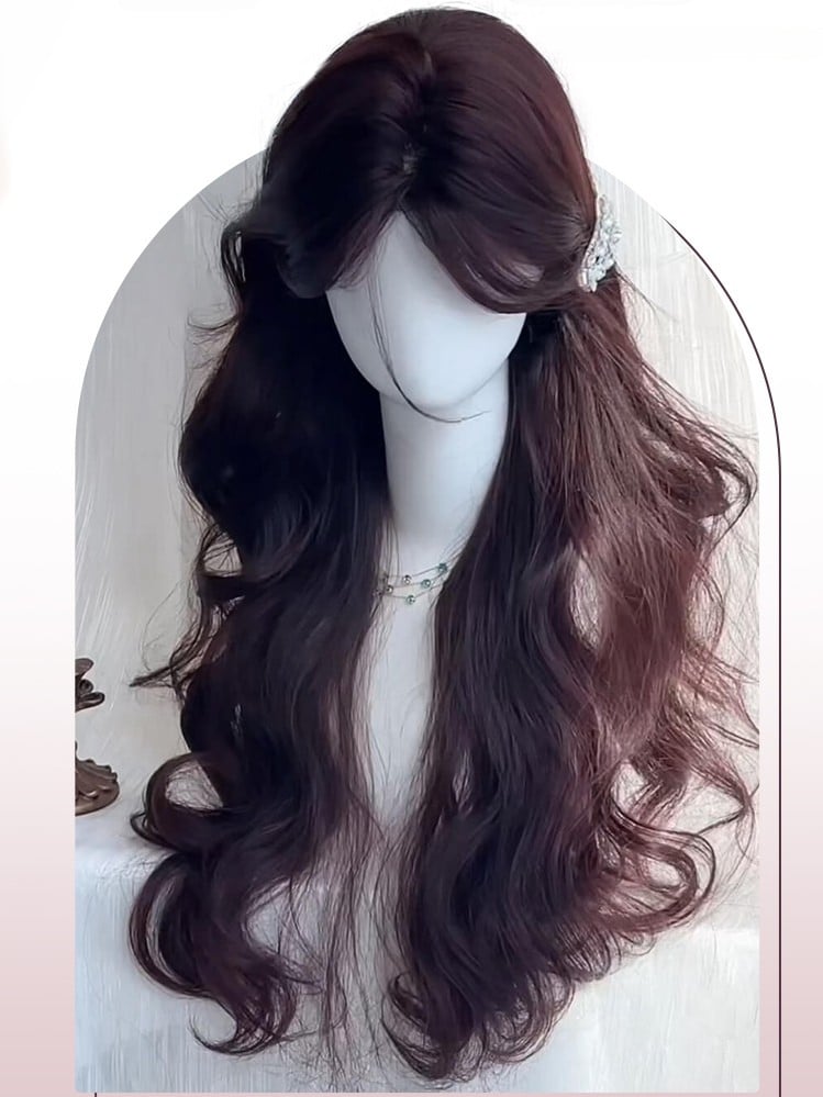 Länge 70CM Perücke Wellig Schokoladenbraun