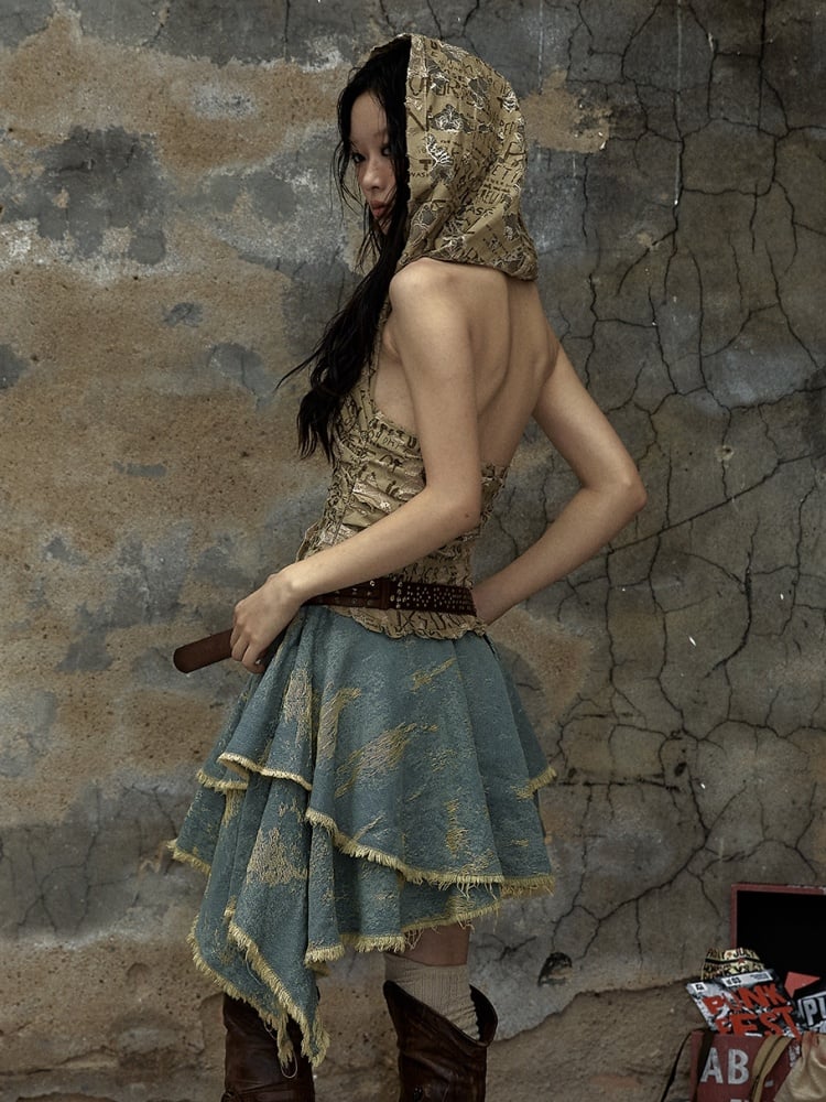 Dieses bezaubernde und stylische Kleid mit Buchstaben-Khaki-Top, Jeans-Taschentuchrock und Punk-Kapuzenkleid ist perfekt für einen witzigen und dennoch ausgefallenen Look. Das Khaki-Top und der Jeans-Taschentuchrock verleihen einen Hauch von Punk, während das Kapuzendesign für eine einzigartige Note sorgt. Rocken Sie dieses Kleid und fallen Sie in jeder Menge auf.