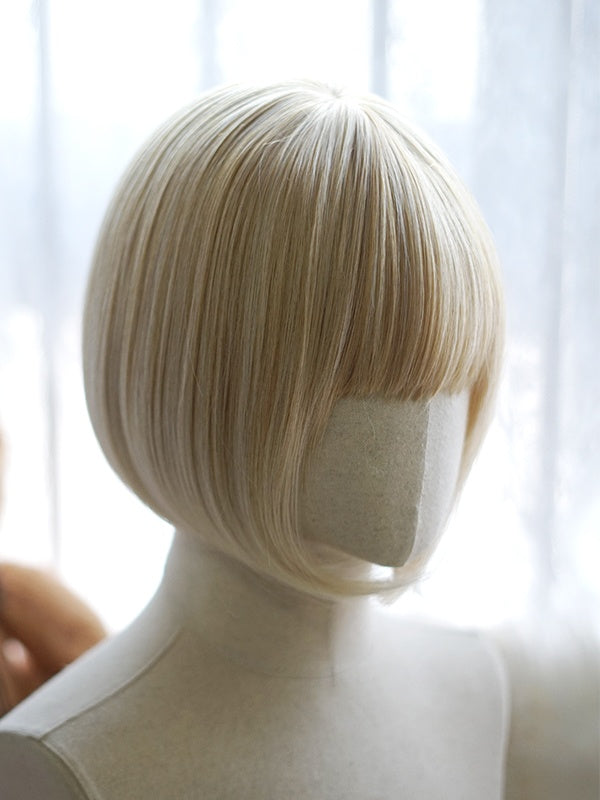 Hellblonde Bob-Perücke mit kurzem, glattem Schnitt und Pony