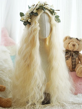 Diese hellblonde Perücke von 可爱的 hat hüftlange Locken und einen lockigen Pony, perfekt für einen verspielten und charmanten Look. Verleihen Sie Ihrem Haar mit dieser Perücke mühelos Volumen und Struktur.