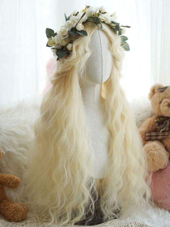 Hellblonde, hüftlange, lockige Perücke mit lockigem Vorhangpony