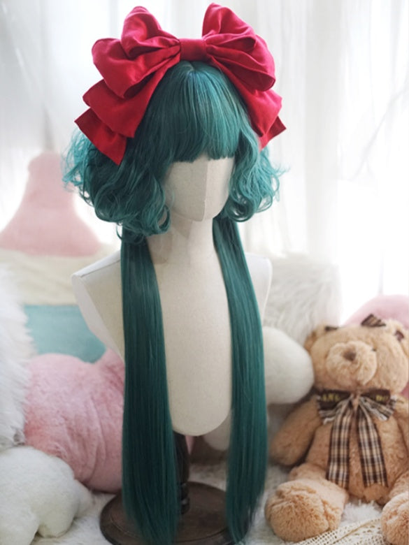 Hellblonde/pinke/rote/grüne/violette hüftlange Perücke mit vollem Pony