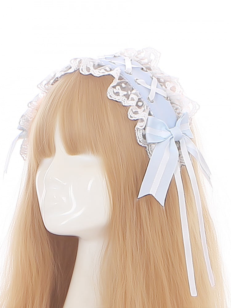 Hellblaues Jirai-Kei-Haarband mit überkreuztem Spitzenbesatz