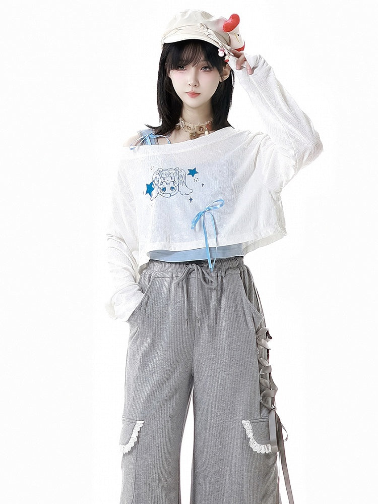 Hellblaues, gepolstertes Tanktop mit süßem Cup und abnehmbarem Mädchen-Print