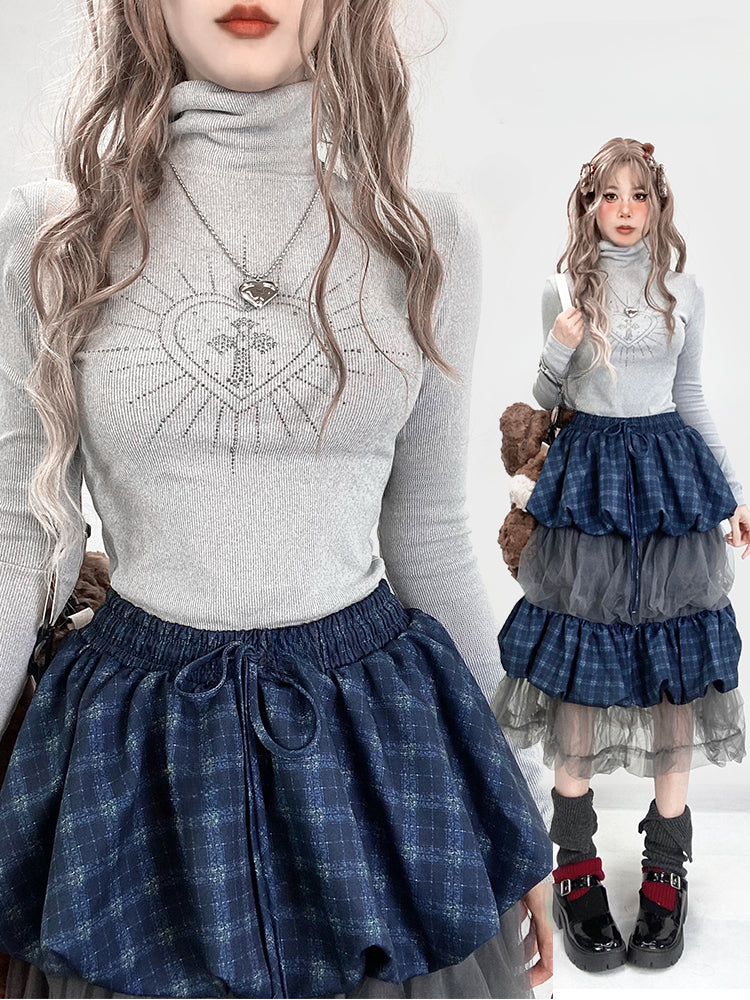 Dieses hellgraue Stricktop mit seinem hochgeschlossenen Design hält Sie warm und stilvoll. Die zarten herzförmigen Strasssteine verleihen diesem kuscheligen Oberteil einen Hauch von Niedlichkeit. Perfekt für jede Jahreszeit, ist dieses Top ein Must-have für Ihre Garderobe.