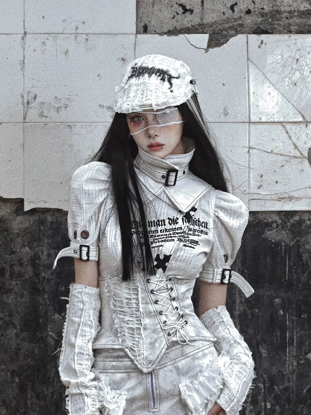 Dieser wunderschöne weiße Logo-Hunting-Gothic-Hut rundet einen süßen und stylischen Look perfekt ab. Mit seinem einzigartigen Logo und dem gotisch inspirierten Design setzt dieser Hut ein echtes Statement. Bleiben Sie im Trend und heben Sie sich mit diesem bezaubernden Accessoire von der Masse ab.