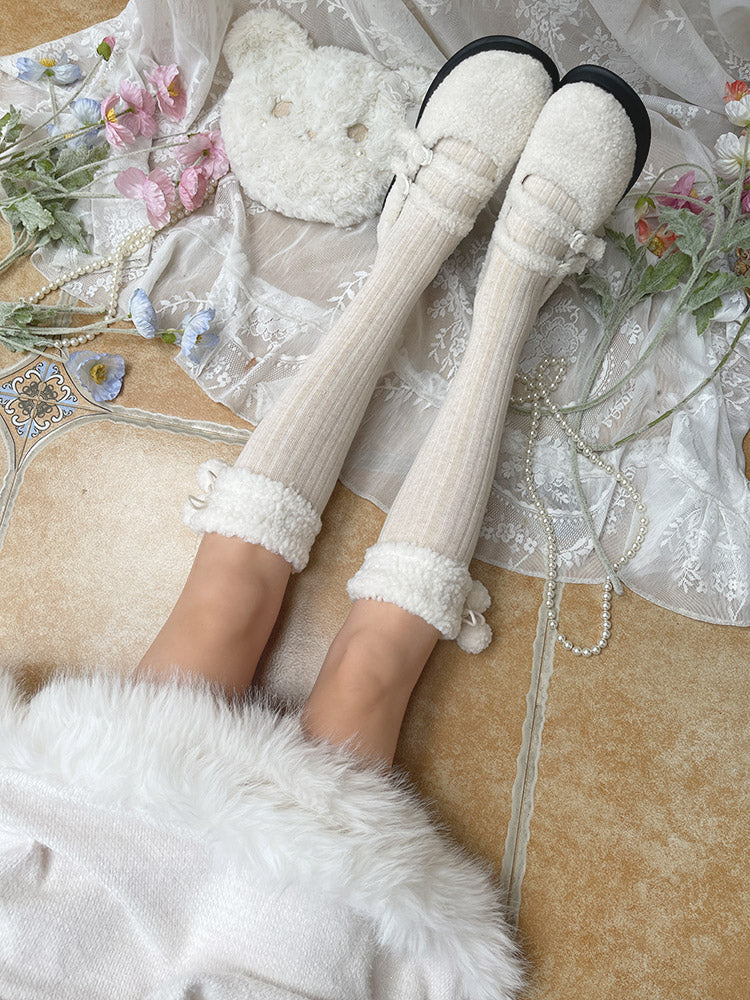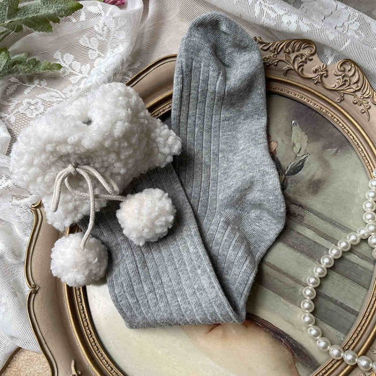 Lolita Pompons Baumwollstrümpfe mit Fleecebündchen