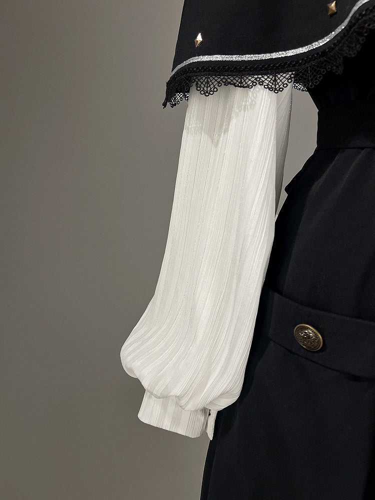 Dragon Print Gothic Lolita Skirt + White Blouse + Hooded Cape Coat Dark Academia Fashion