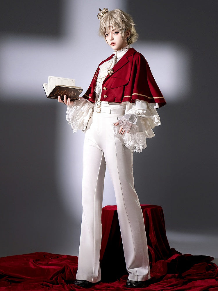 Lolita Weiß Ouji Zwei Gürtel mit Hosen Mode Hohe Taille