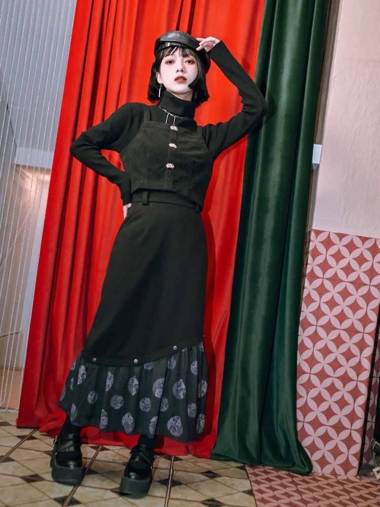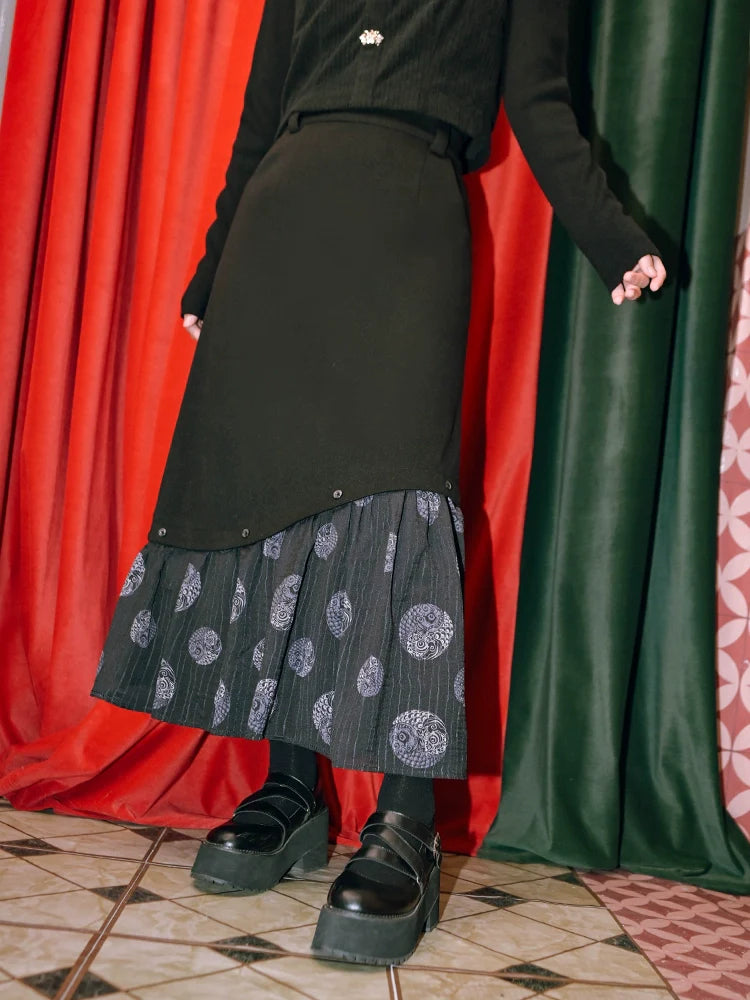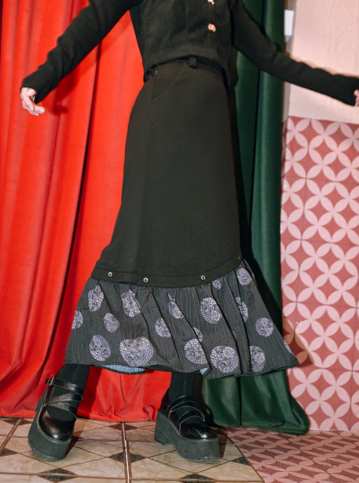 Verleihen Sie Ihrer Garderobe mit unserem langen China Plus Print Skirt Splicing Velvet einen Hauch von Niedlichkeit. Weiches Samtmaterial und ein einzigartiges Druckdesign machen diesen Rock sowohl bequem als auch stilvoll.