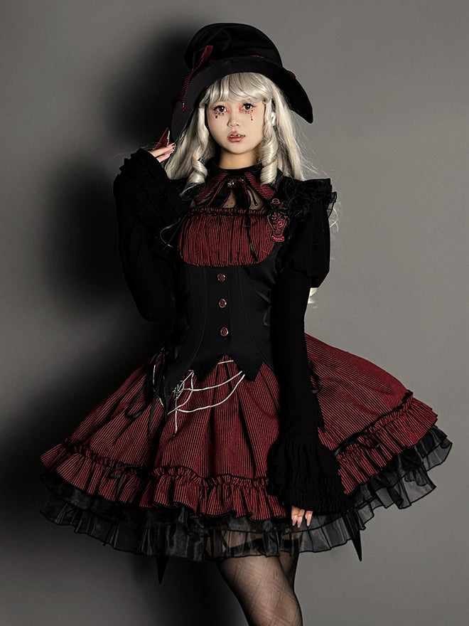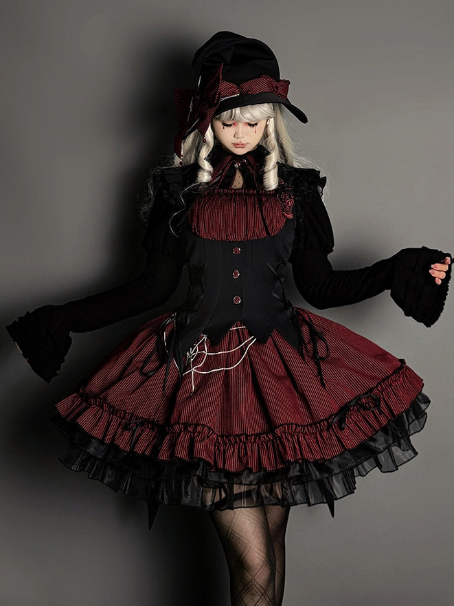 Schwarz-weißes Old School Lolita Fashion Kleid Bowknot Lolita JSK Set