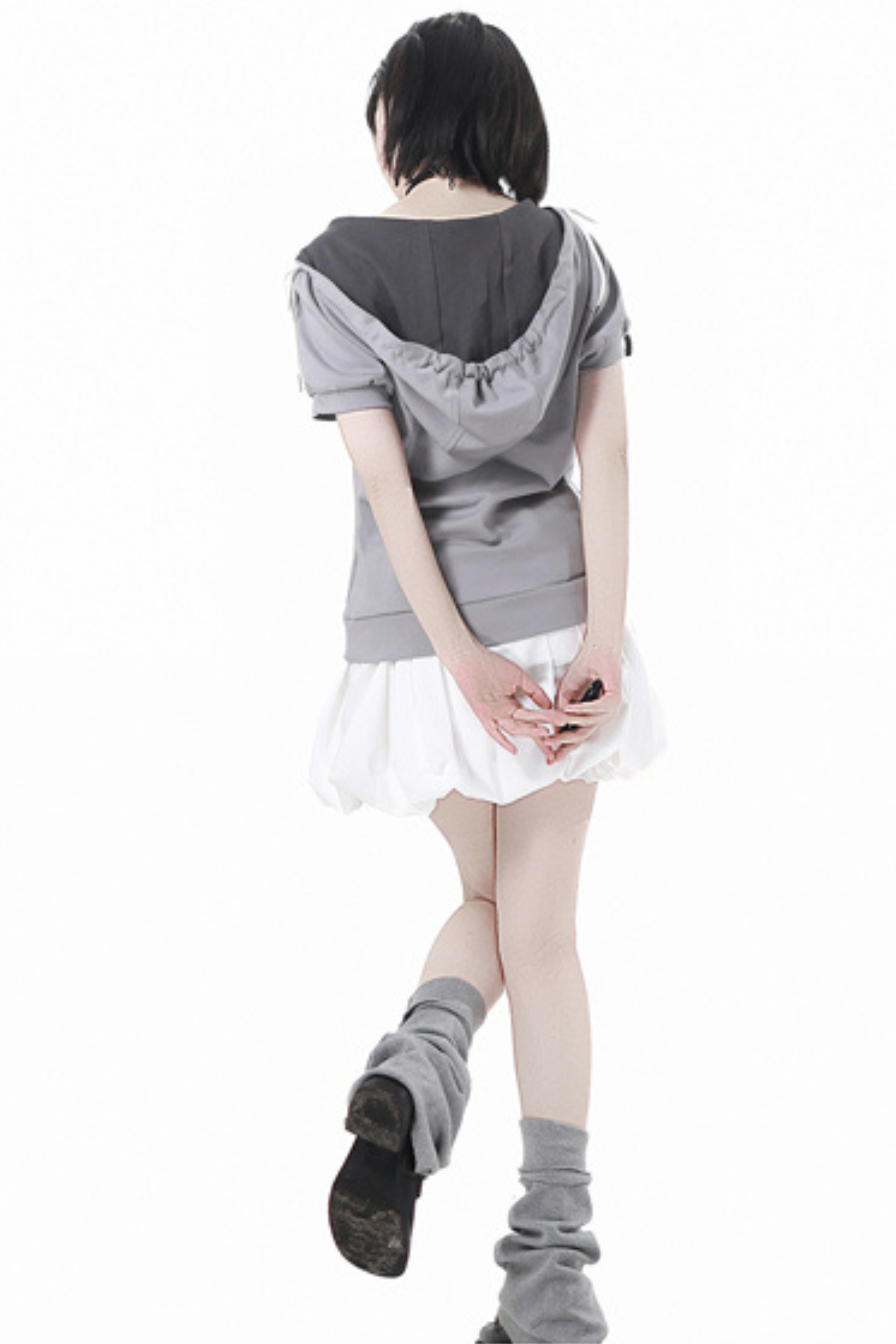❤Kapuzenoberteil mit Schnürung + lockeres T-Shirt + Ballonrock❤