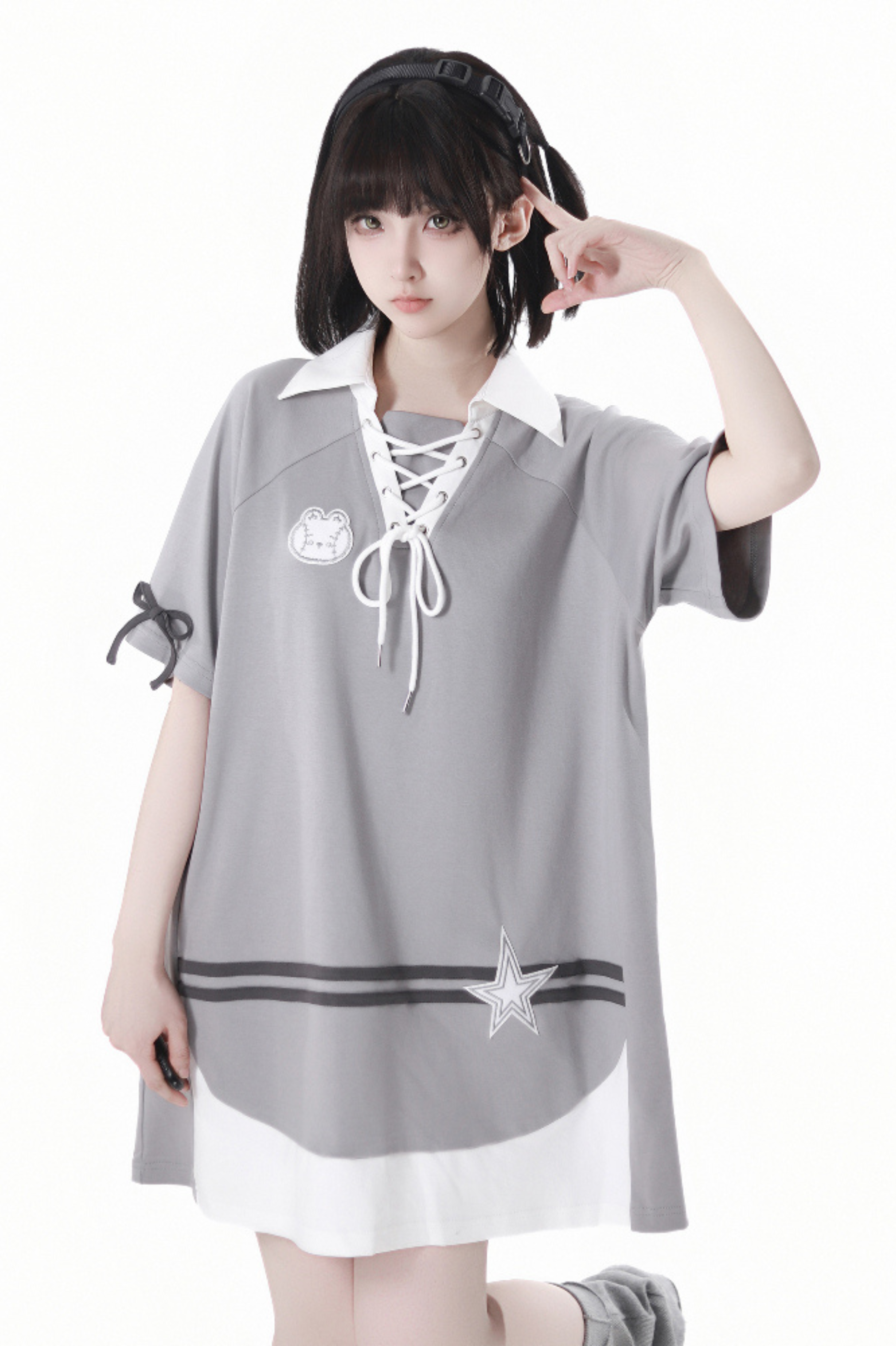 lockerer Schnürrock Ballontop Kapuzen-T-Shirt +
