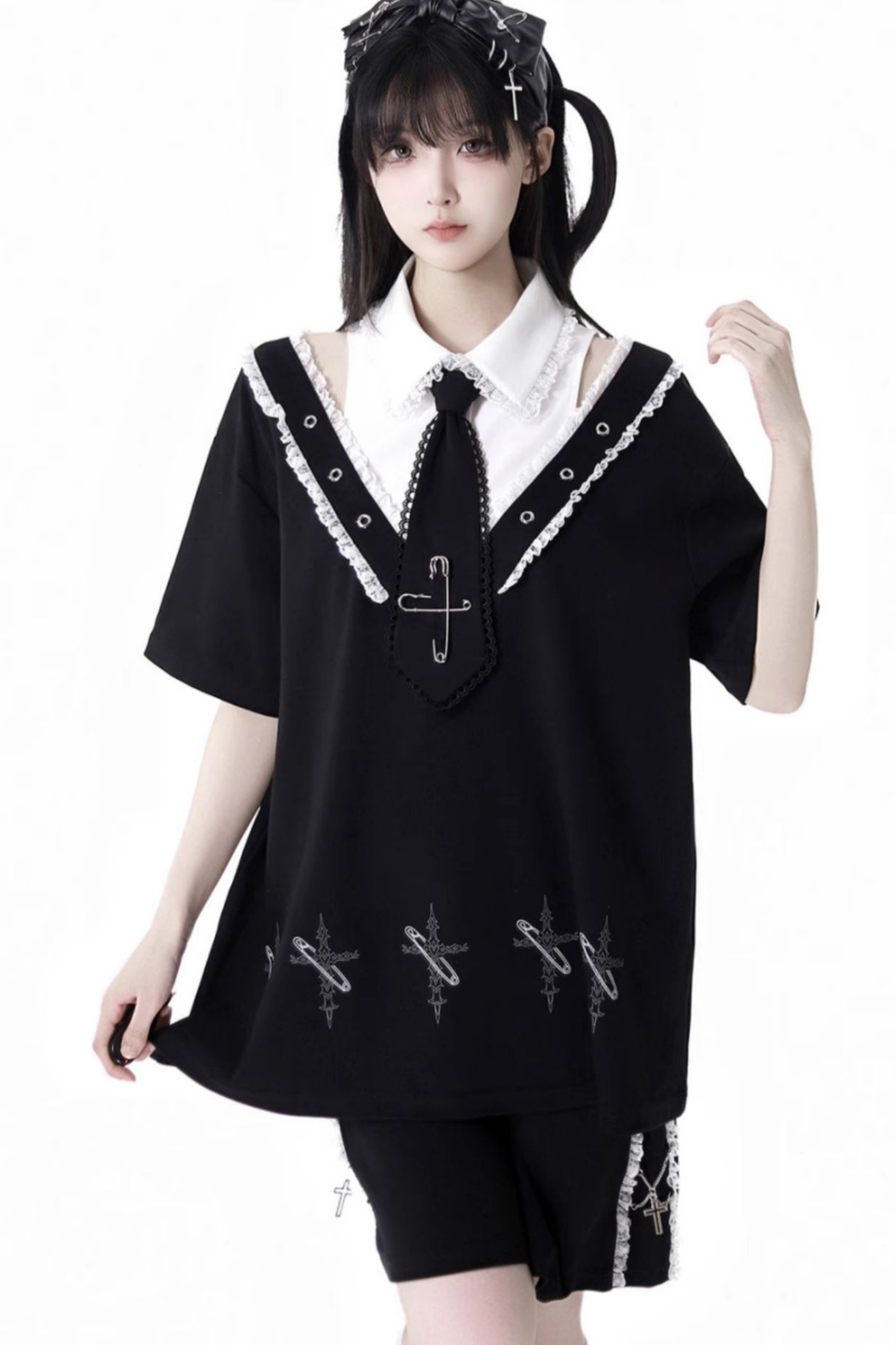 Schwarz-weißes Old School Lolita Fashion Kleid Bowknot Lolita JSK Set