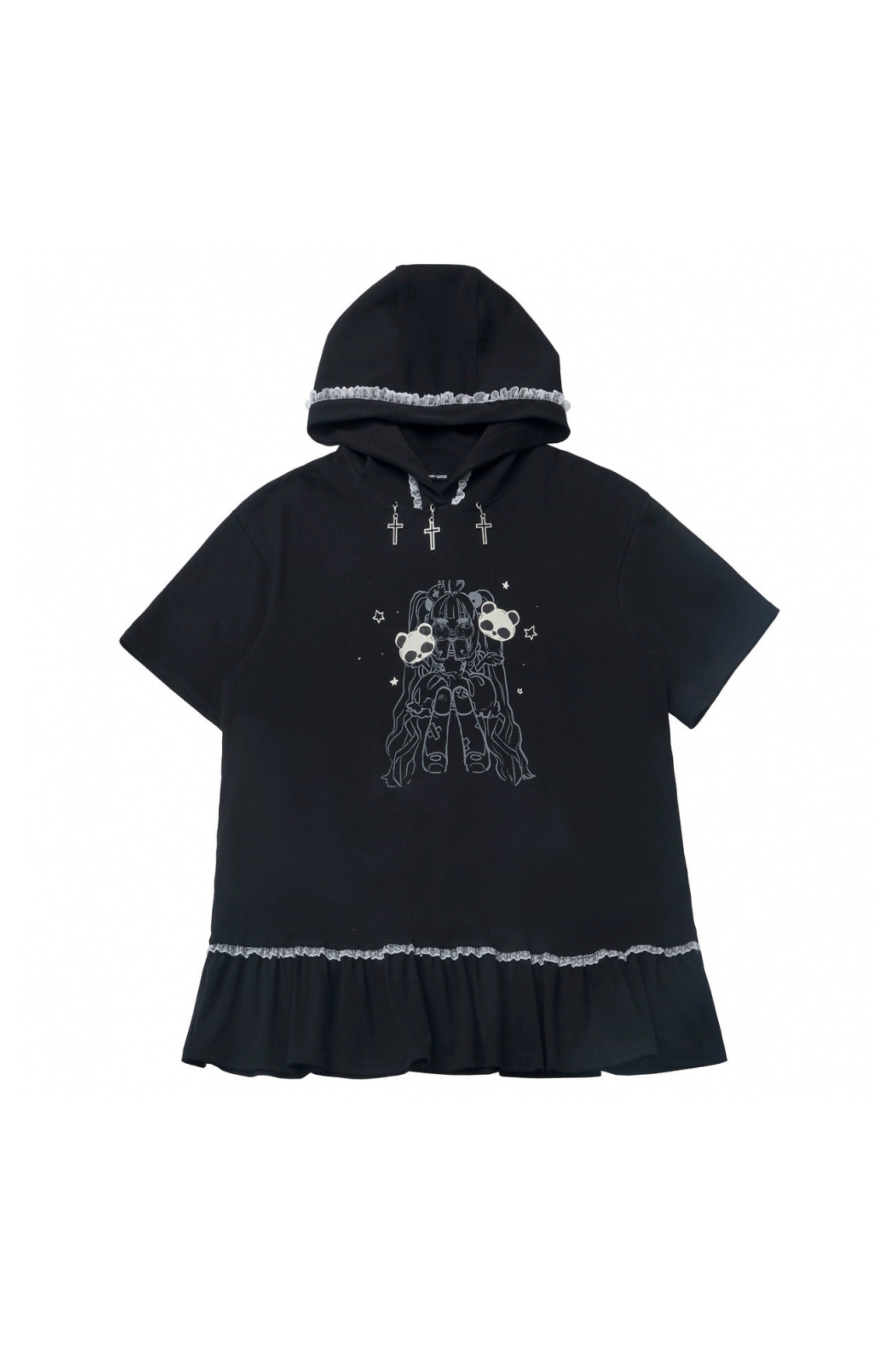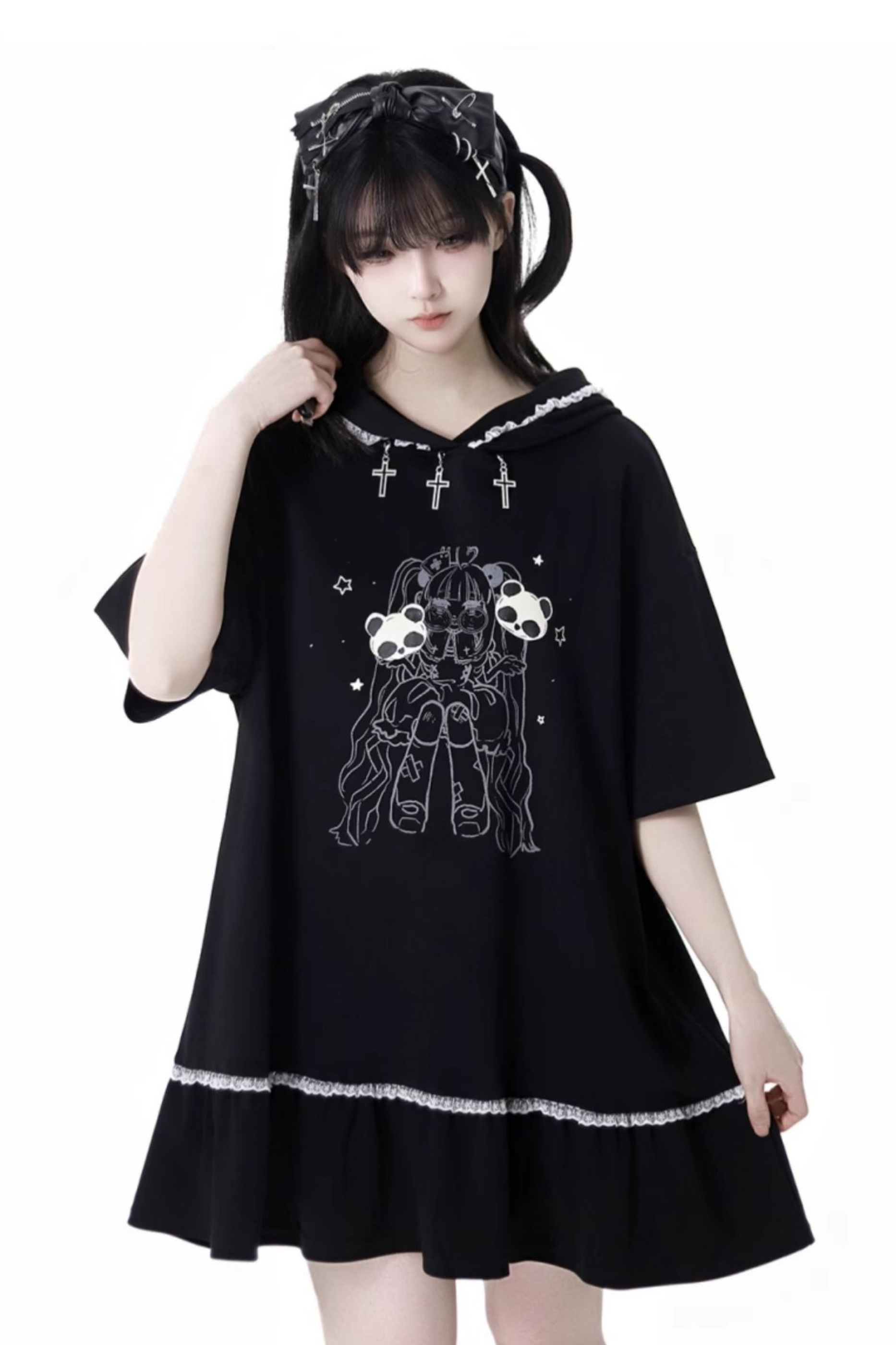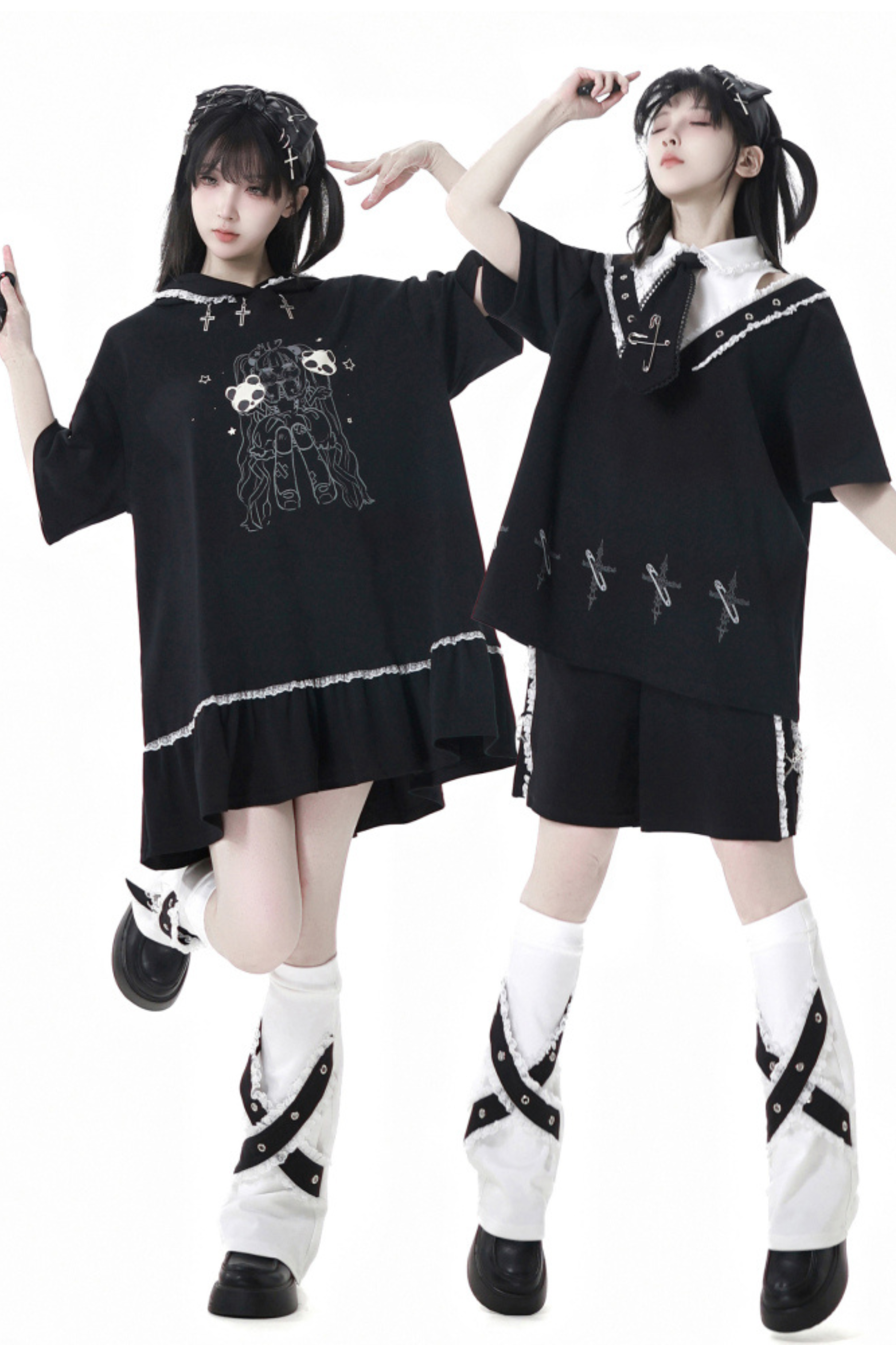 ❤ Rüschenkleid mit Kapuze + lockeres Oberteil von Nektor + Halbhose + Beinwärmer❤