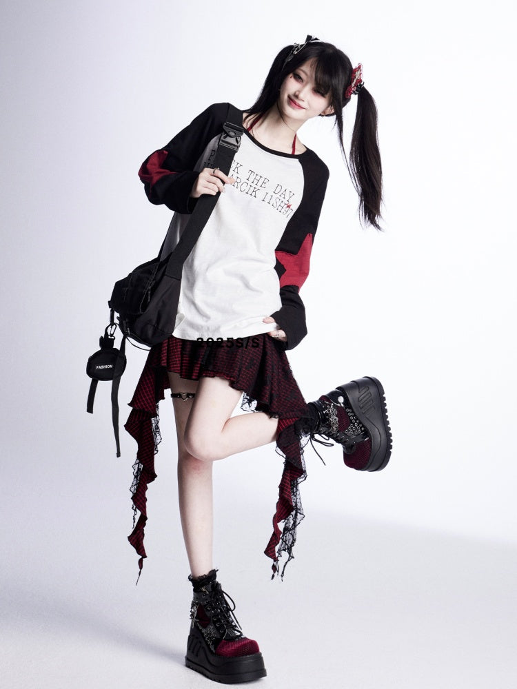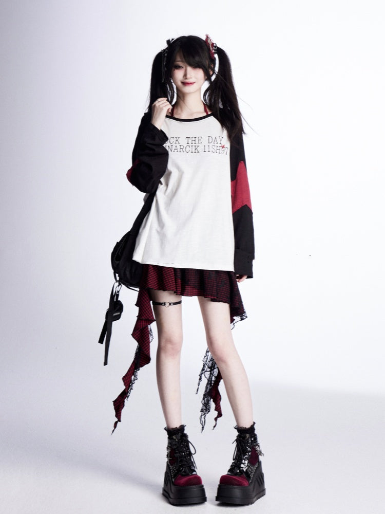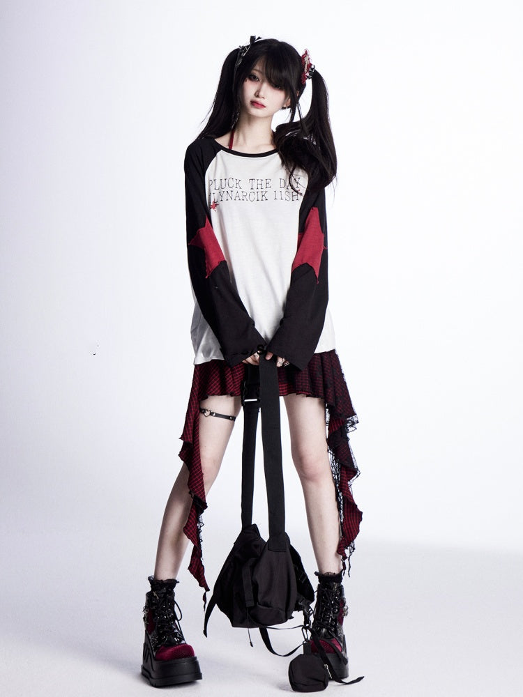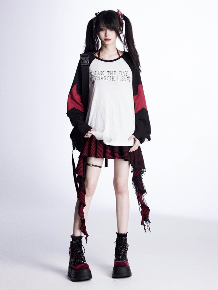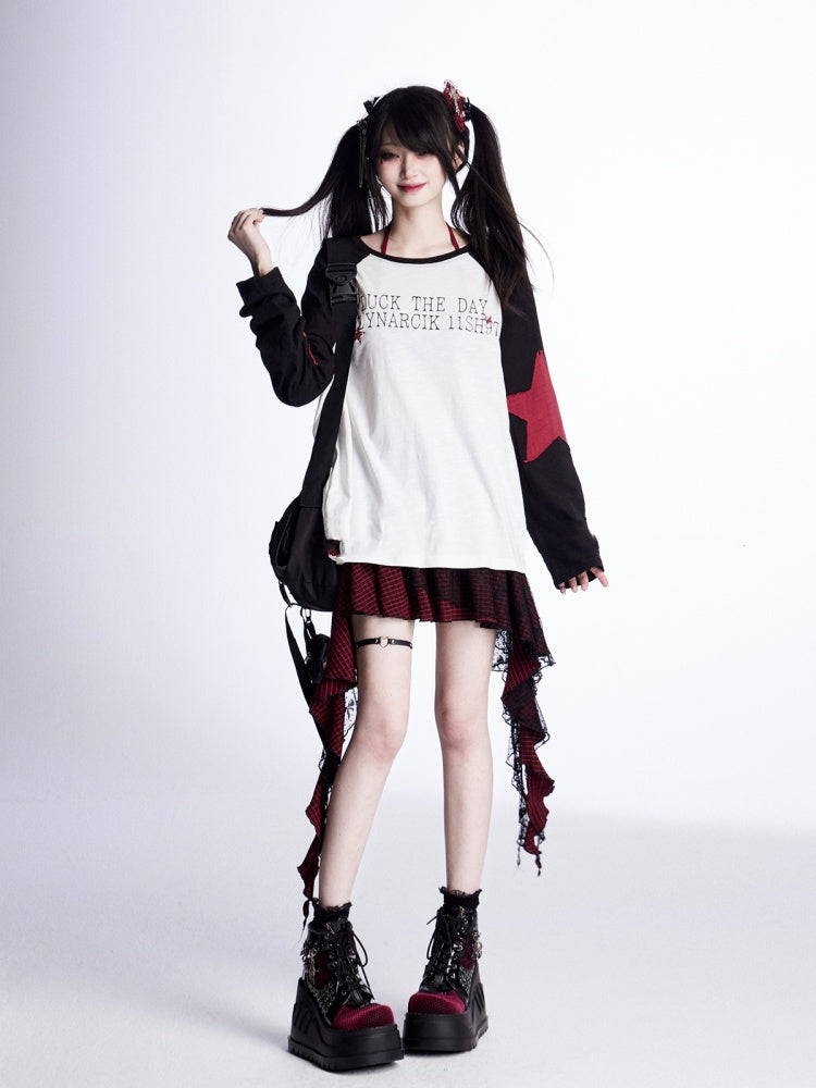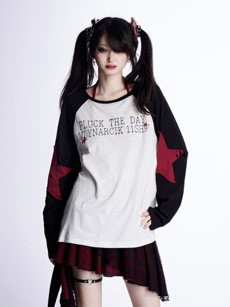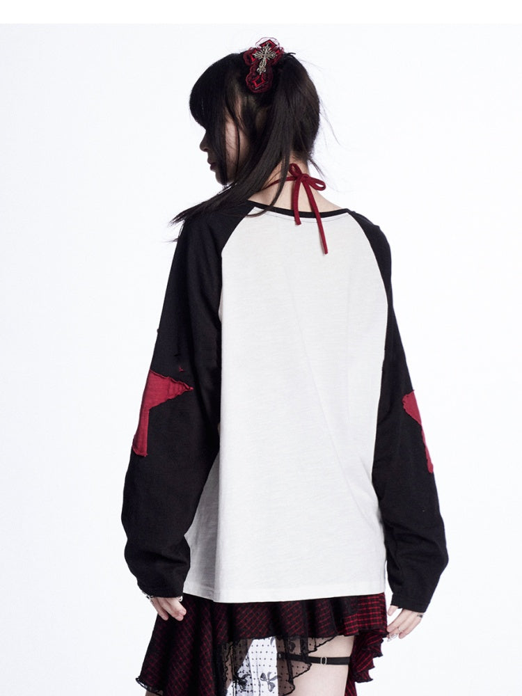 Lockeres Oberteil mit Farbblock-Design und Sternapplikationen an den Ärmeln in Schwarz und Weiß