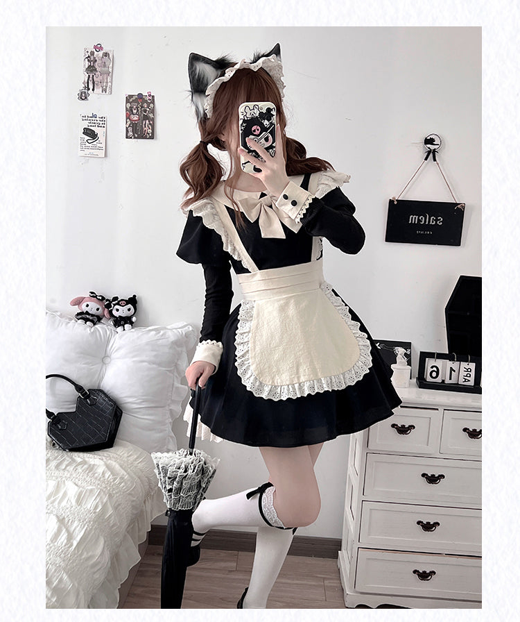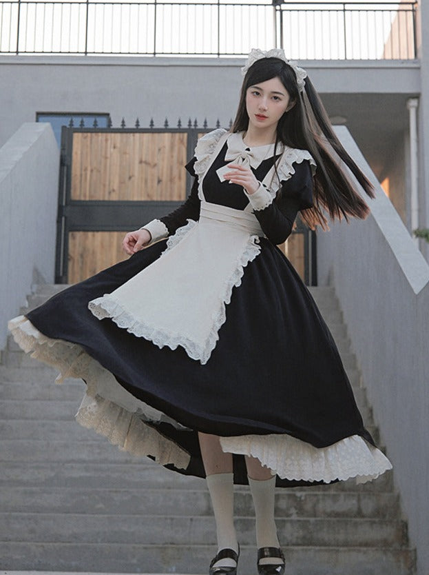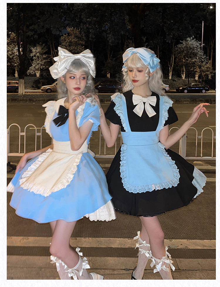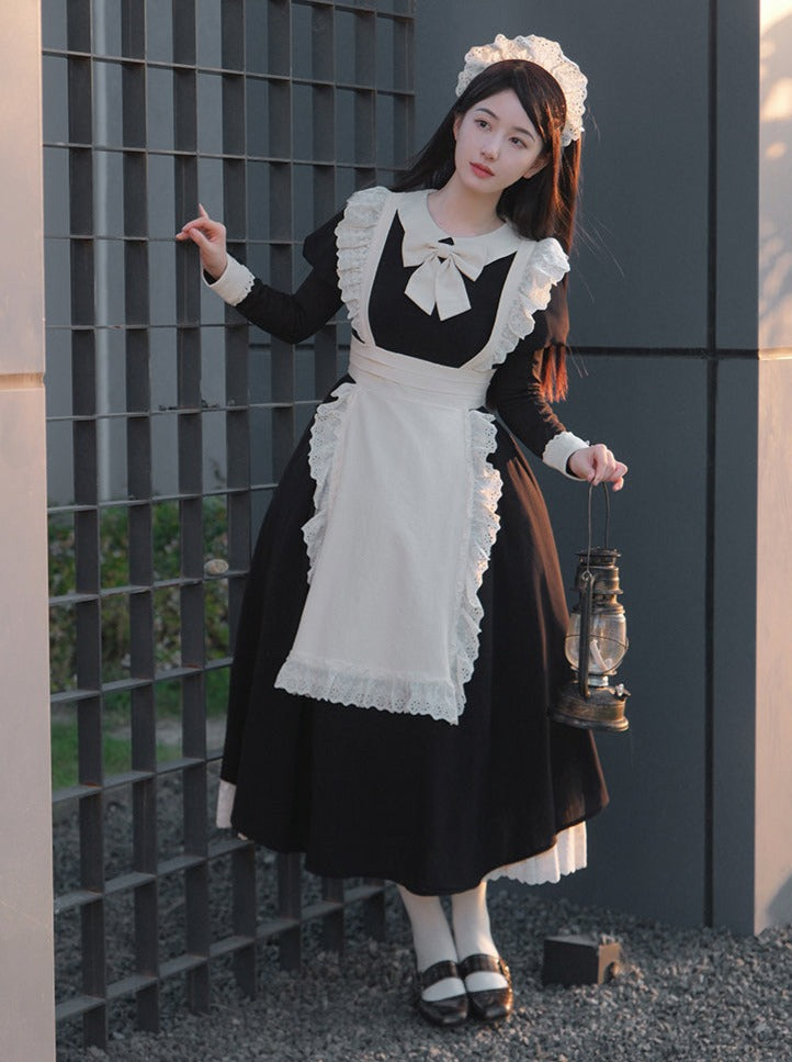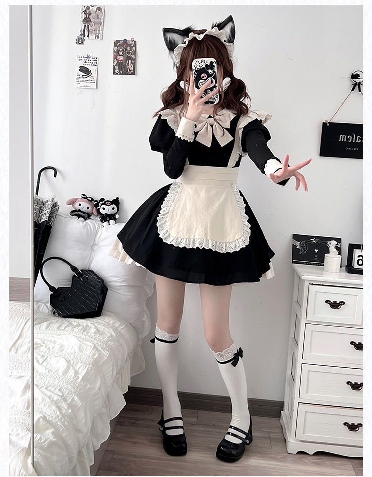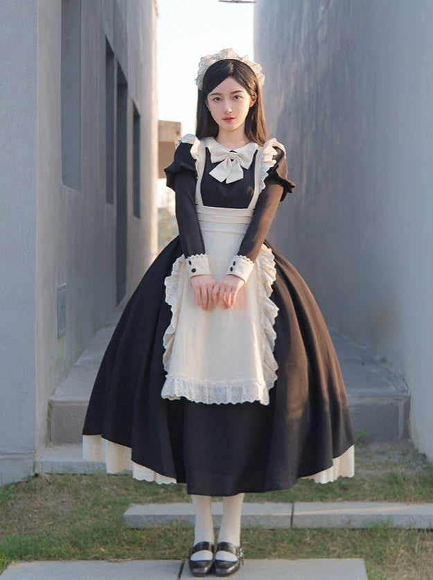 Schwarz-weißes Old School Lolita Fashion Kleid Bowknot Lolita JSK Set