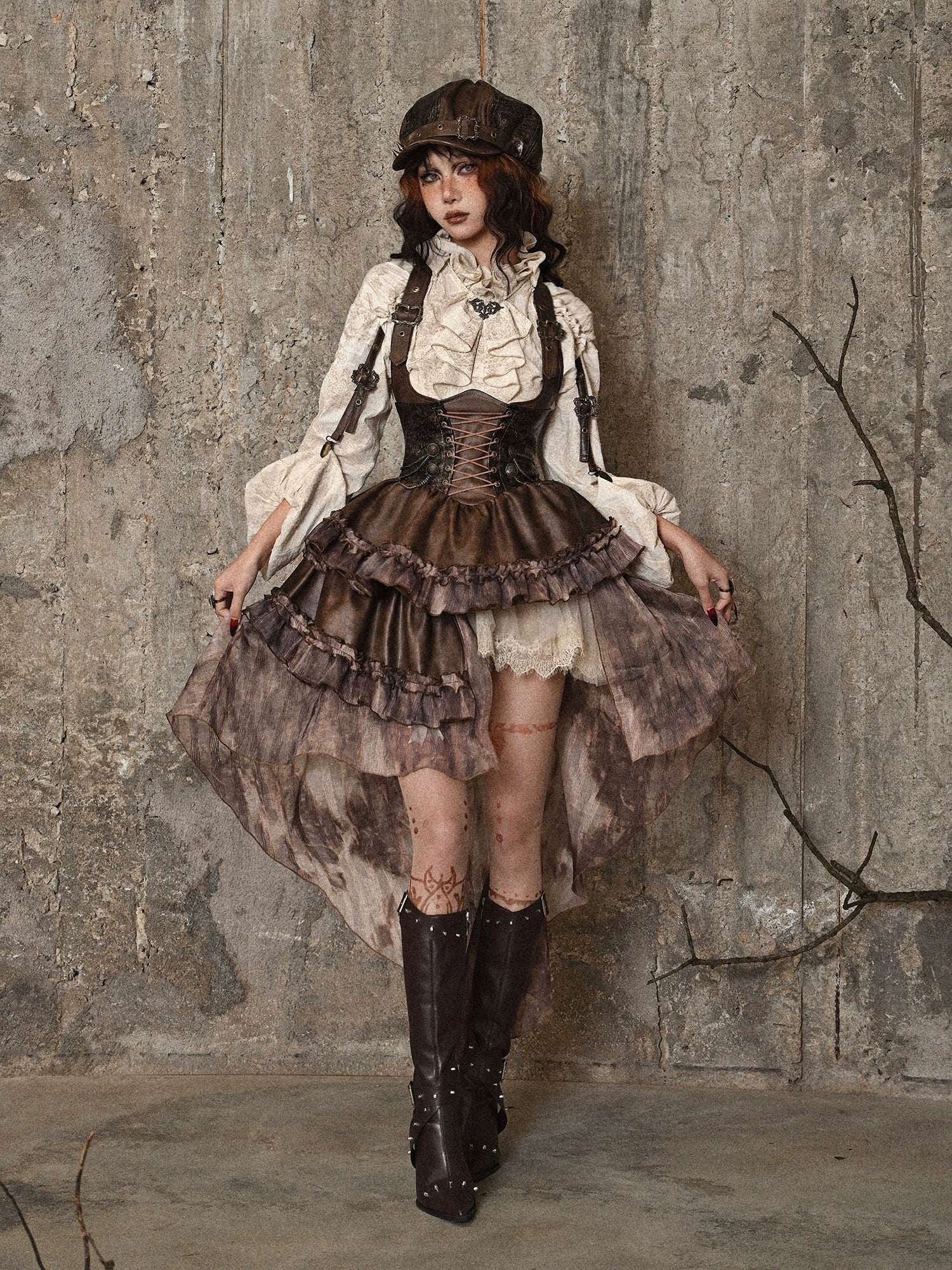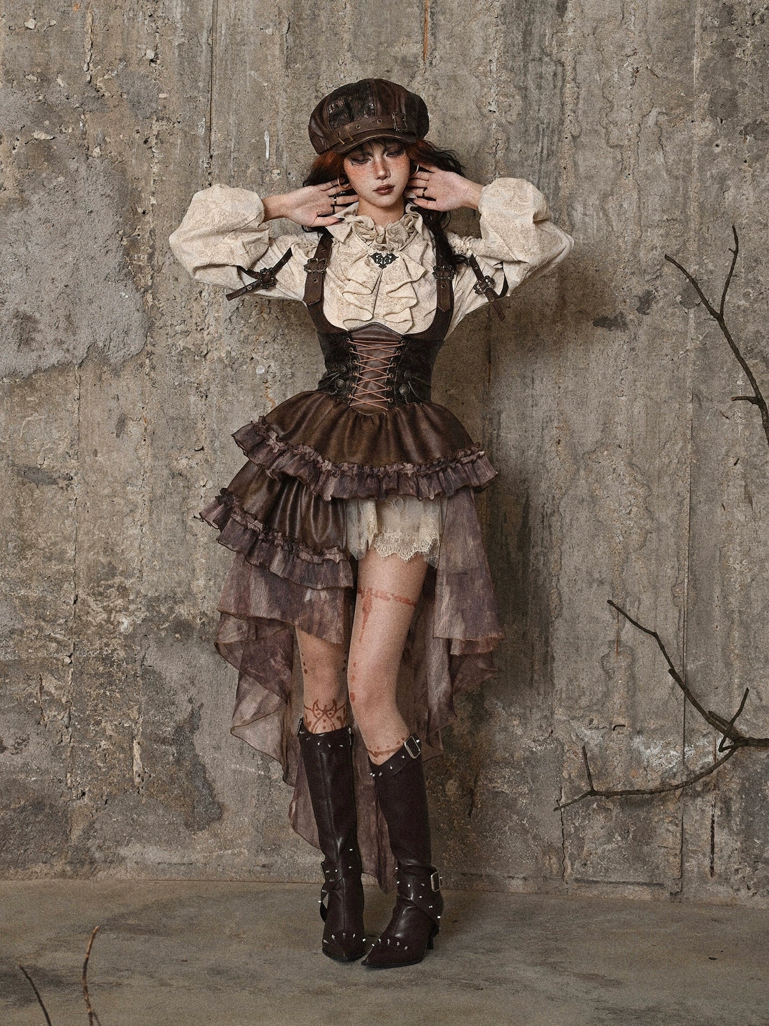 Machen Sie sich bereit für ein Statement im Maillard Chest PU-Rock! Das asymmetrische Design und die Steampunk-Träger verleihen Ihrem Outfit einen Hauch von Einzigartigkeit. Hergestellt aus hochwertigem PU-Material ist dieser Rock sowohl modisch als auch langlebig. Perfekt für alle, die einen süßen und ausgefallenen Stil suchen.