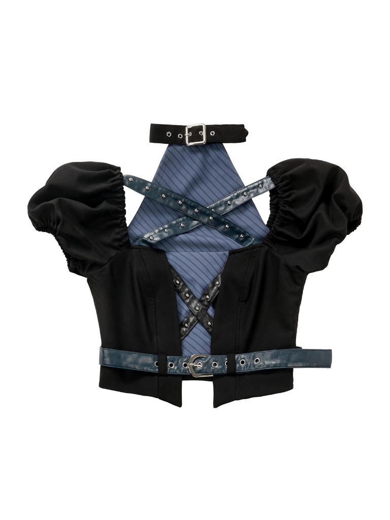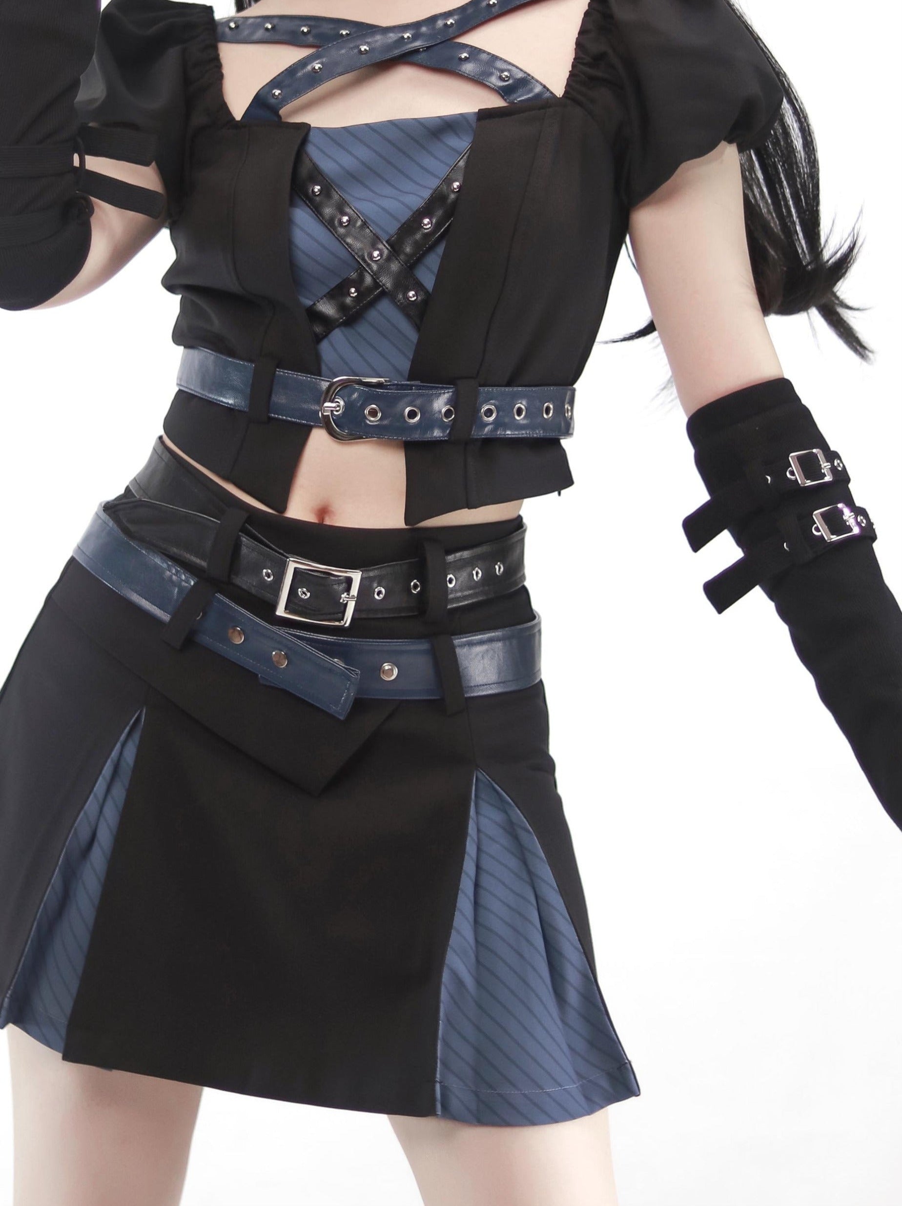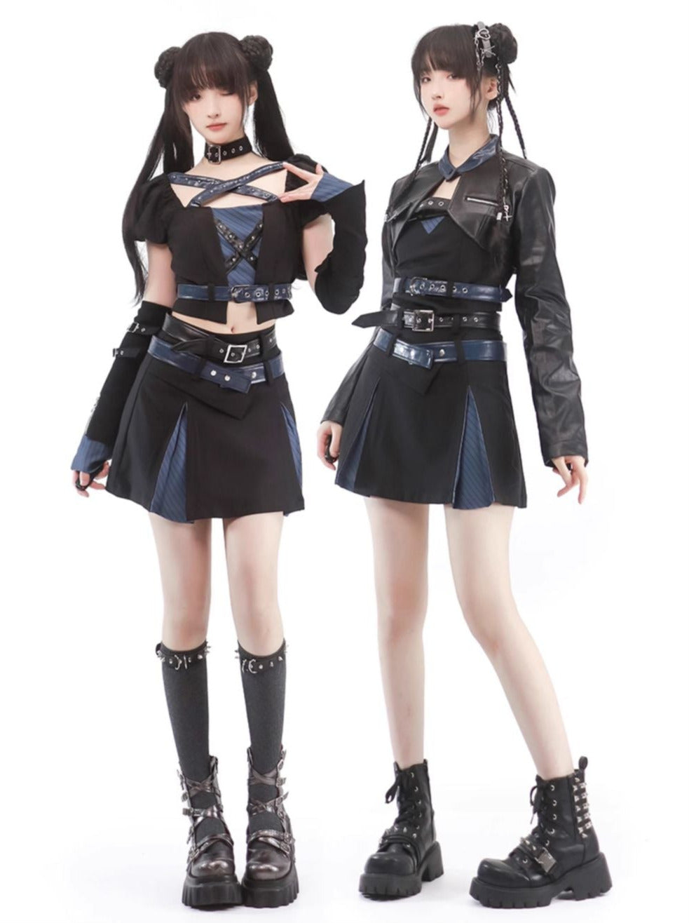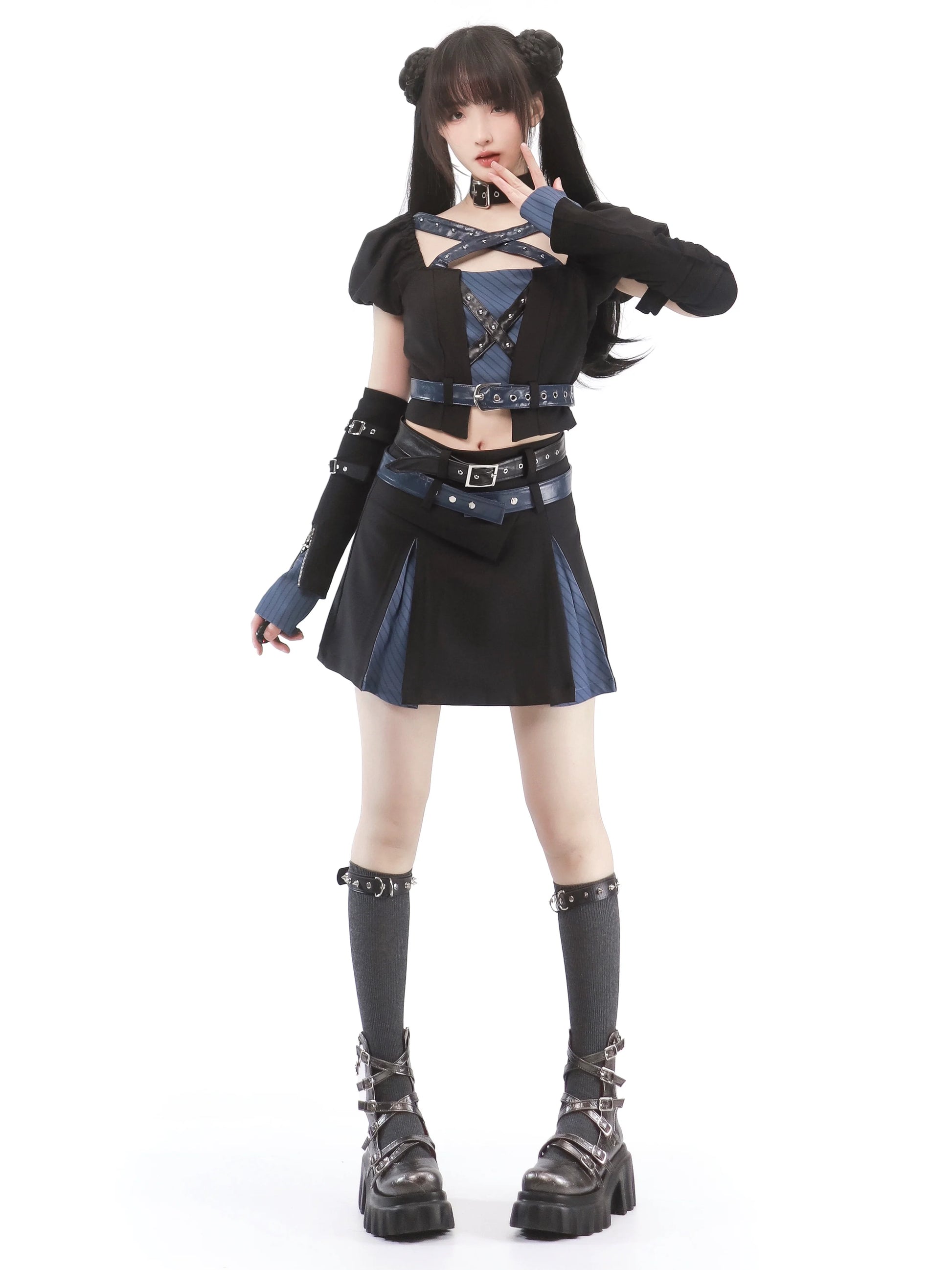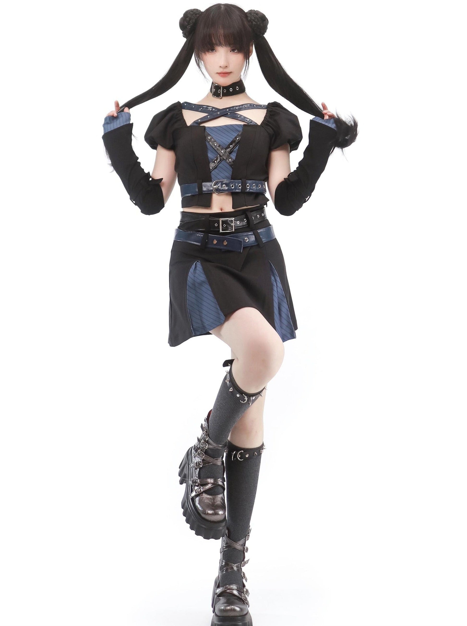 Blau-weißes Old School Lolita Fashion Kleid mit Schleife und Details, JSK-Set