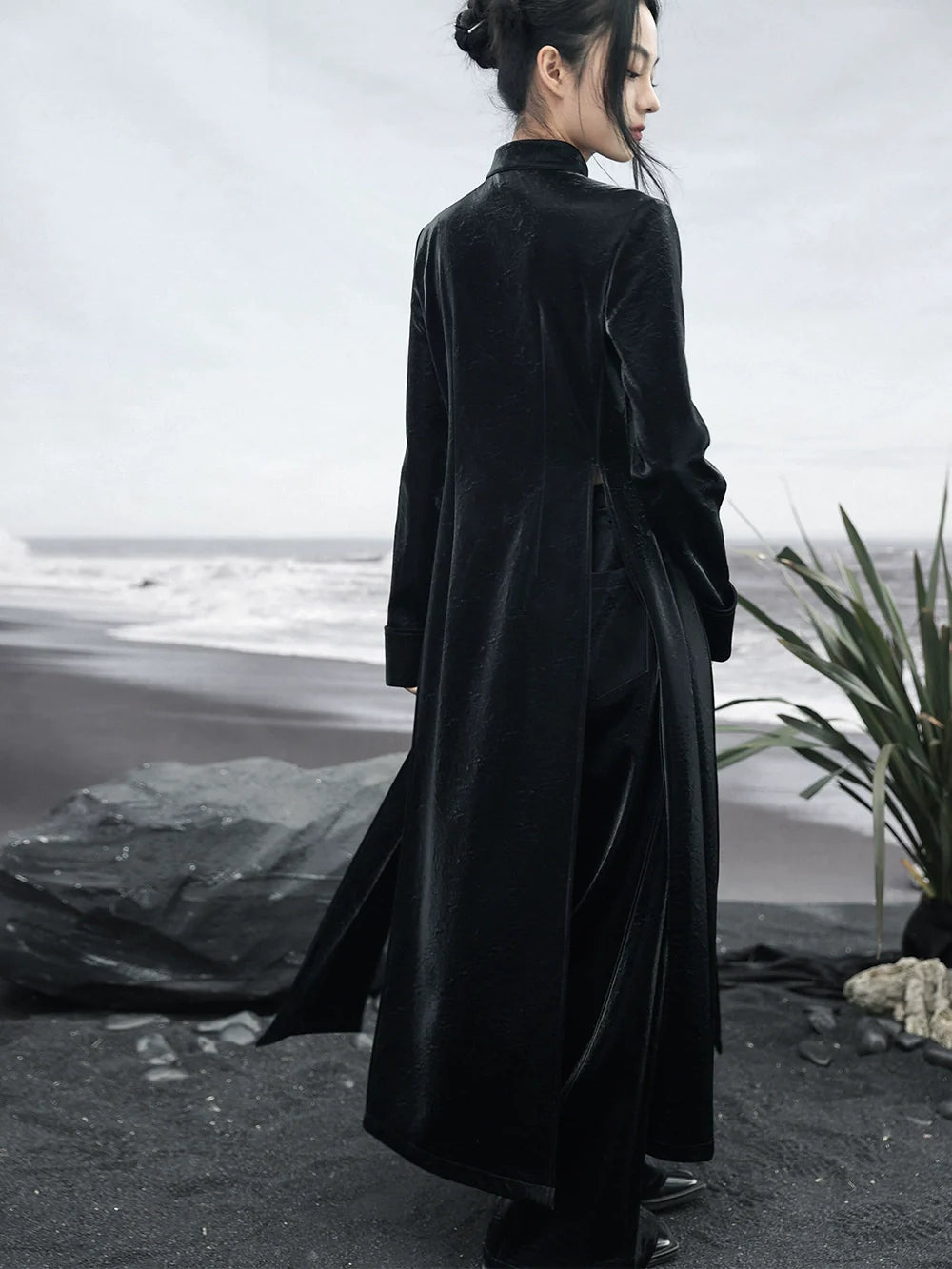 Dieses dunkle Mode China Slit Dress ist stilvoll und vielseitig zugleich. Der hohe Schlitz verleiht einen Hauch von Eleganz, während die dunkle Farbe das Kombinieren erleichtert. Perfekt für jeden Anlass, ist dieses Kleid ein Must-have für jeden Kleiderschrank.