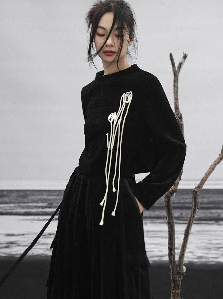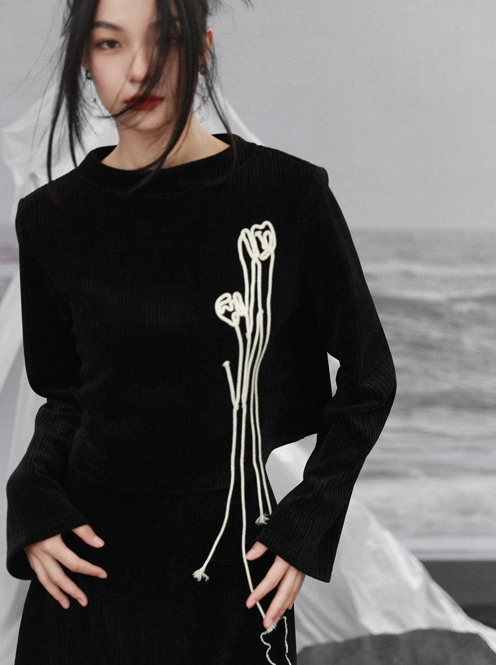Dieses wunderschöne Mote Dark Rib Top mit kurzem Tulpendesign bietet einen süßen und stylischen Look. Die gerippte Struktur verleiht dem Oberteil einen Hauch von Struktur und macht es zu einem vielseitigen Kleidungsstück für jede Garderobe. Perfekt für ein charmantes und verspieltes Outfit.