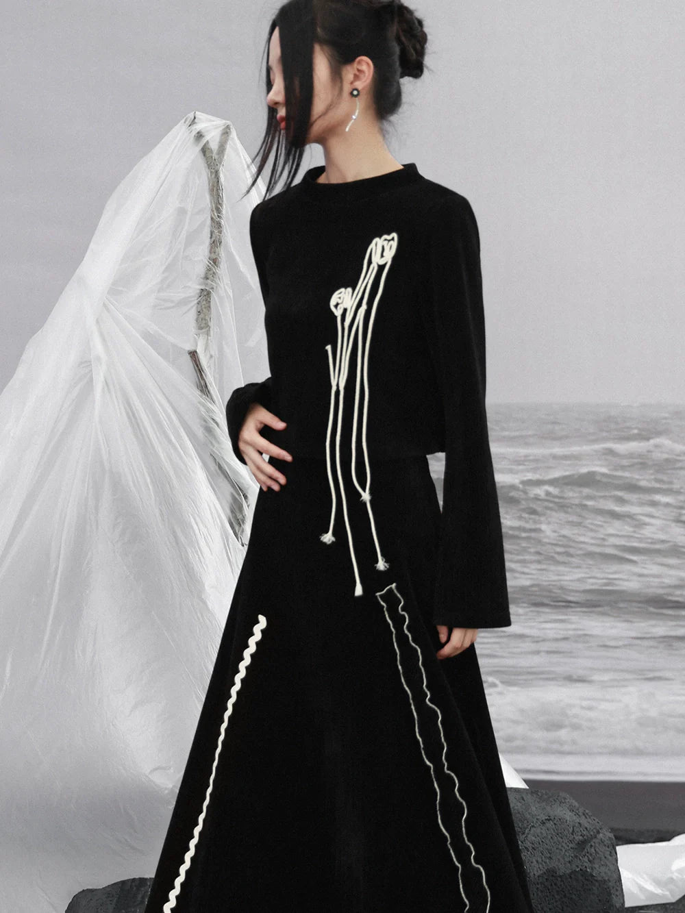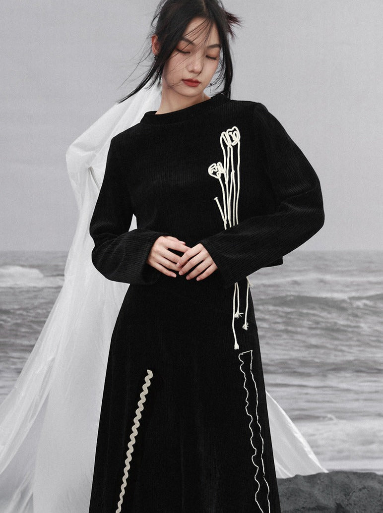 Schwarz-weißes Old School Lolita Fashion Kleid Bowknot Lolita JSK Set