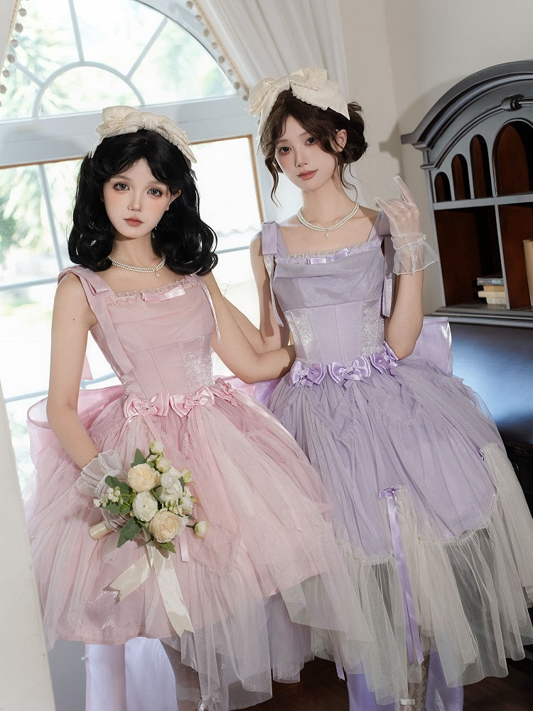 Rosa und weißes Old School Lolita Fashion Kleid Bowknot Detais Lolita JSK Set