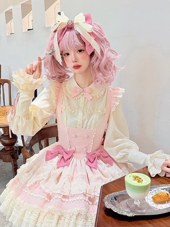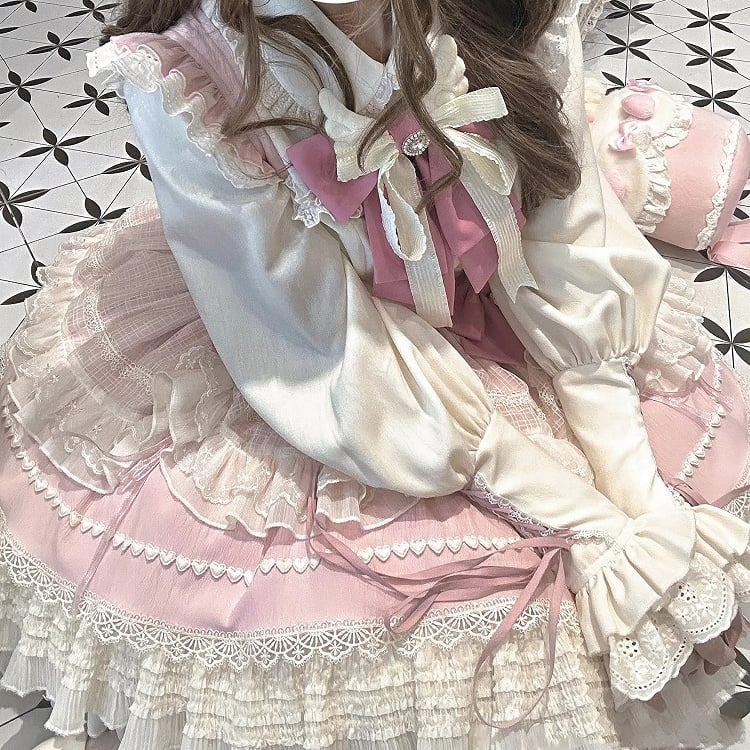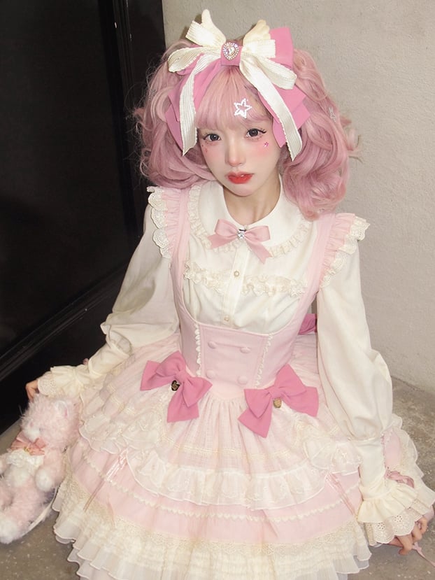 Rosa und weißes Old School Lolita Fashion Kleid Bowknot Detais Lolita JSK Set