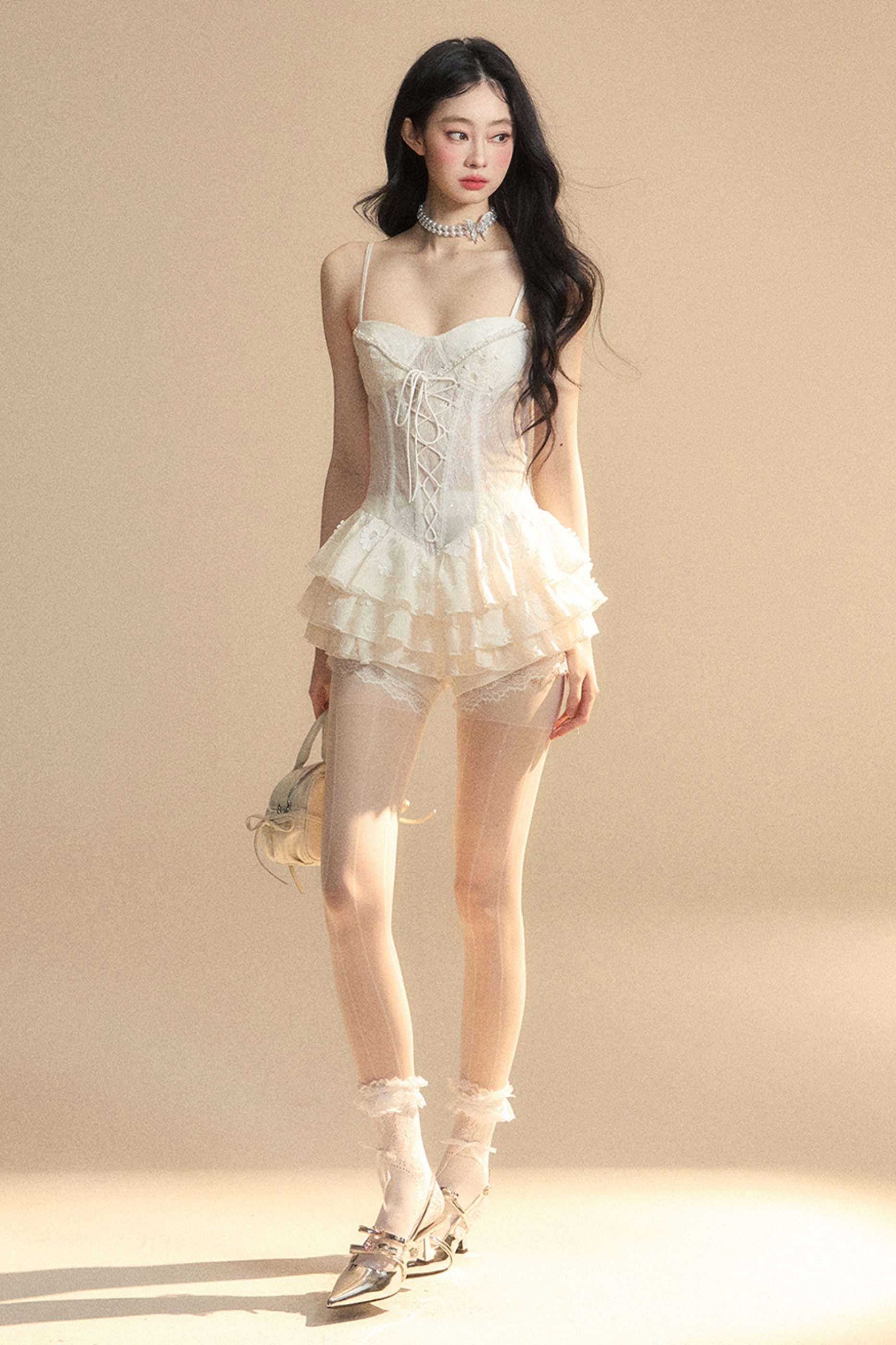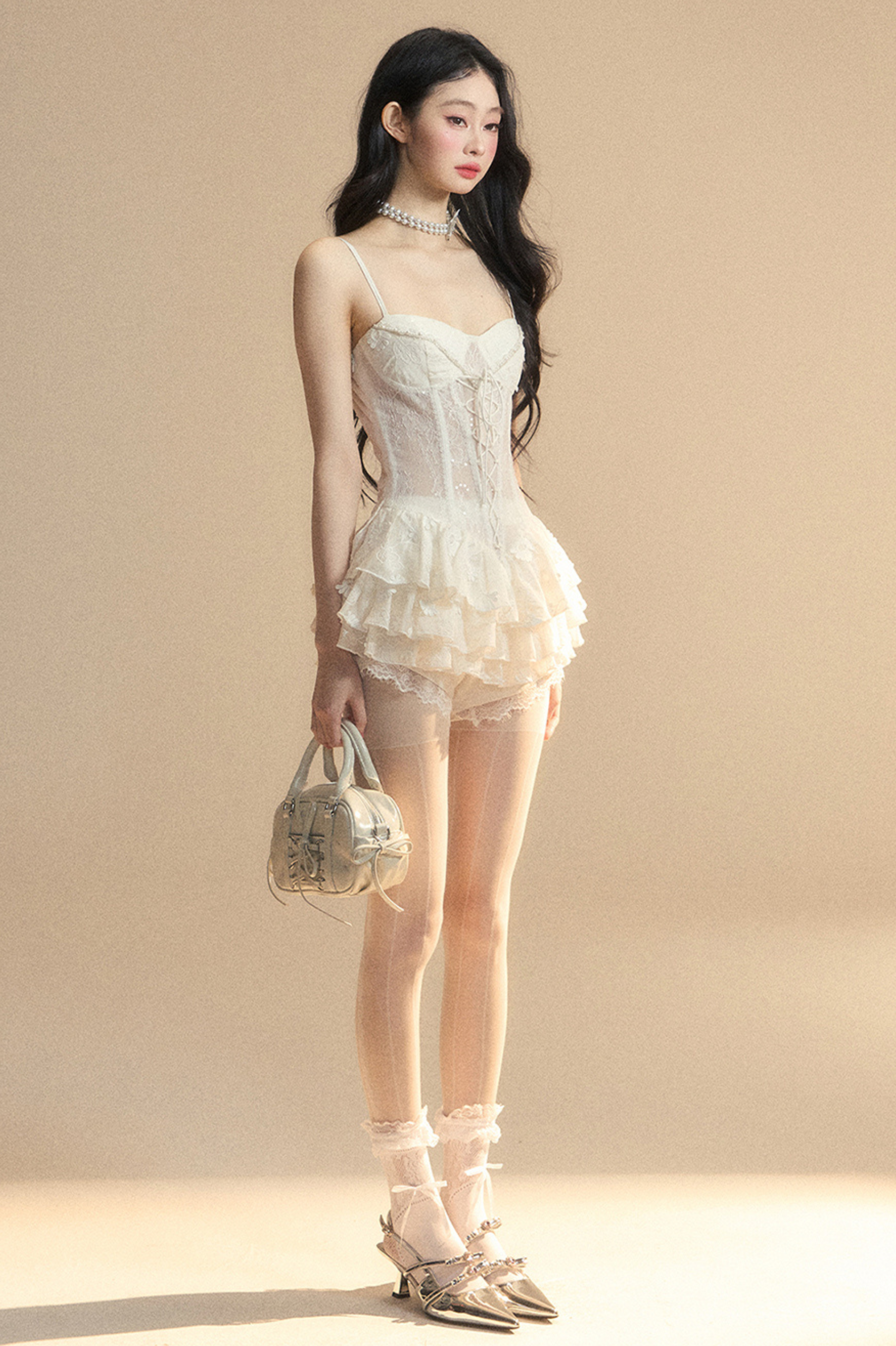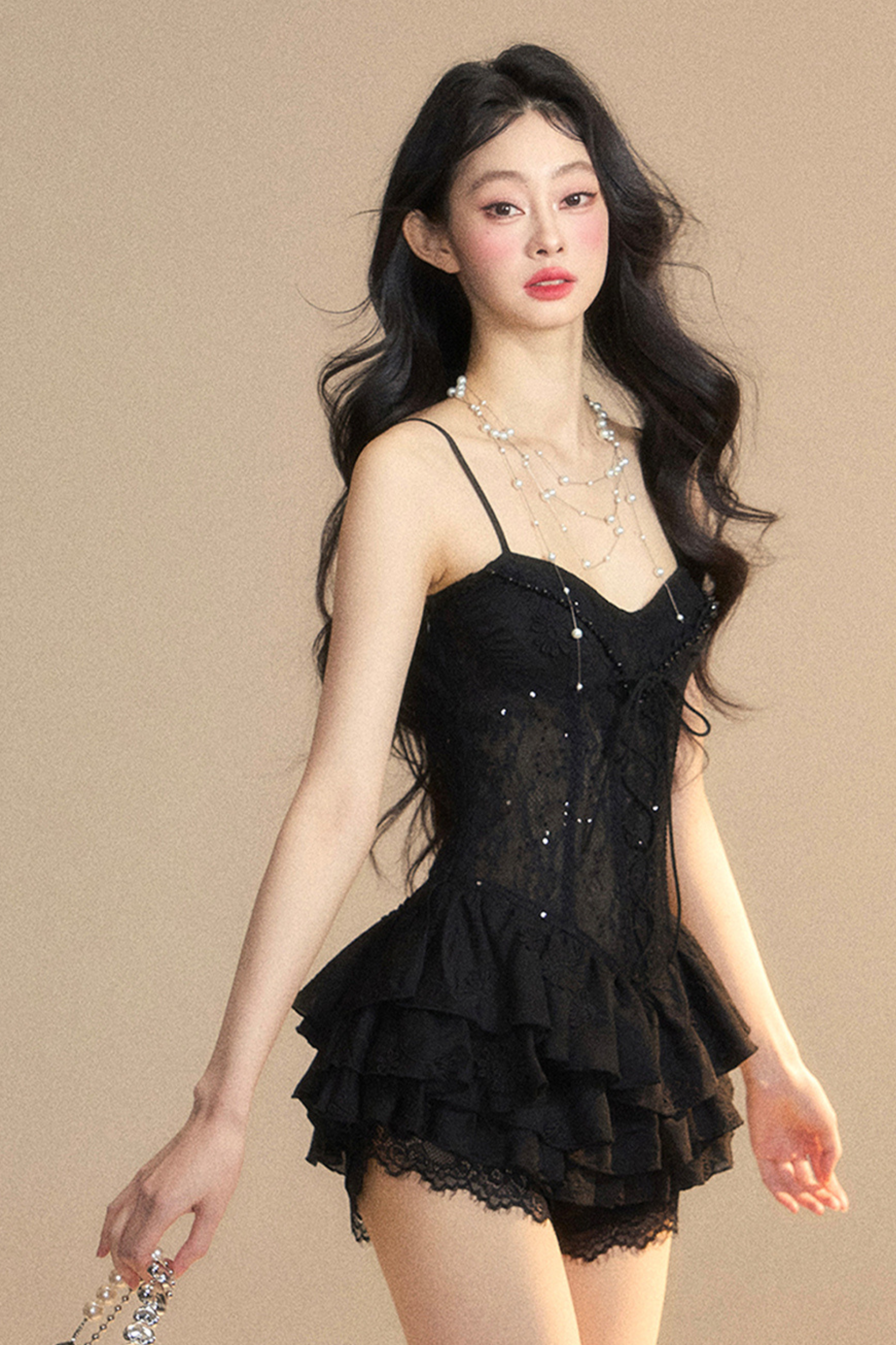 ❤Einschultriges Camisole-Kleid aus französischer Spitze❤