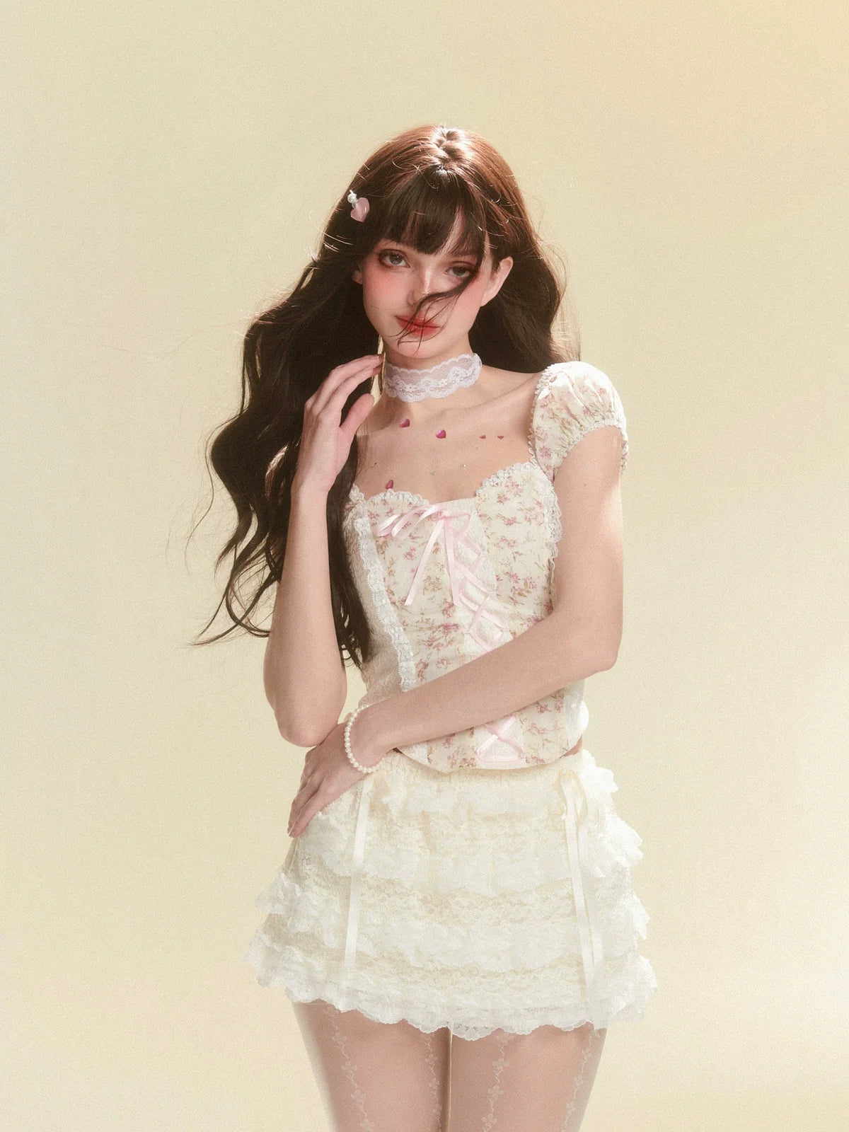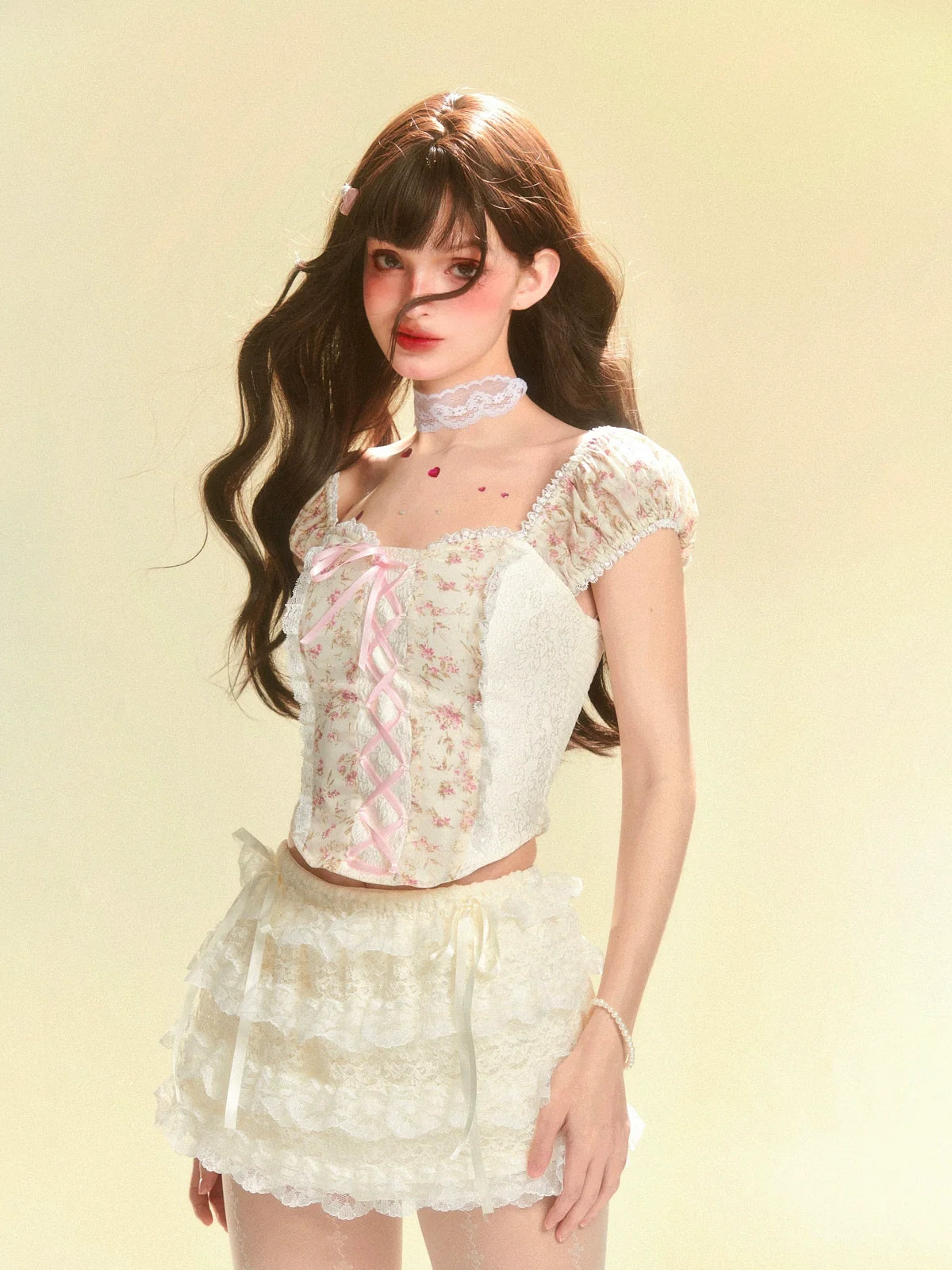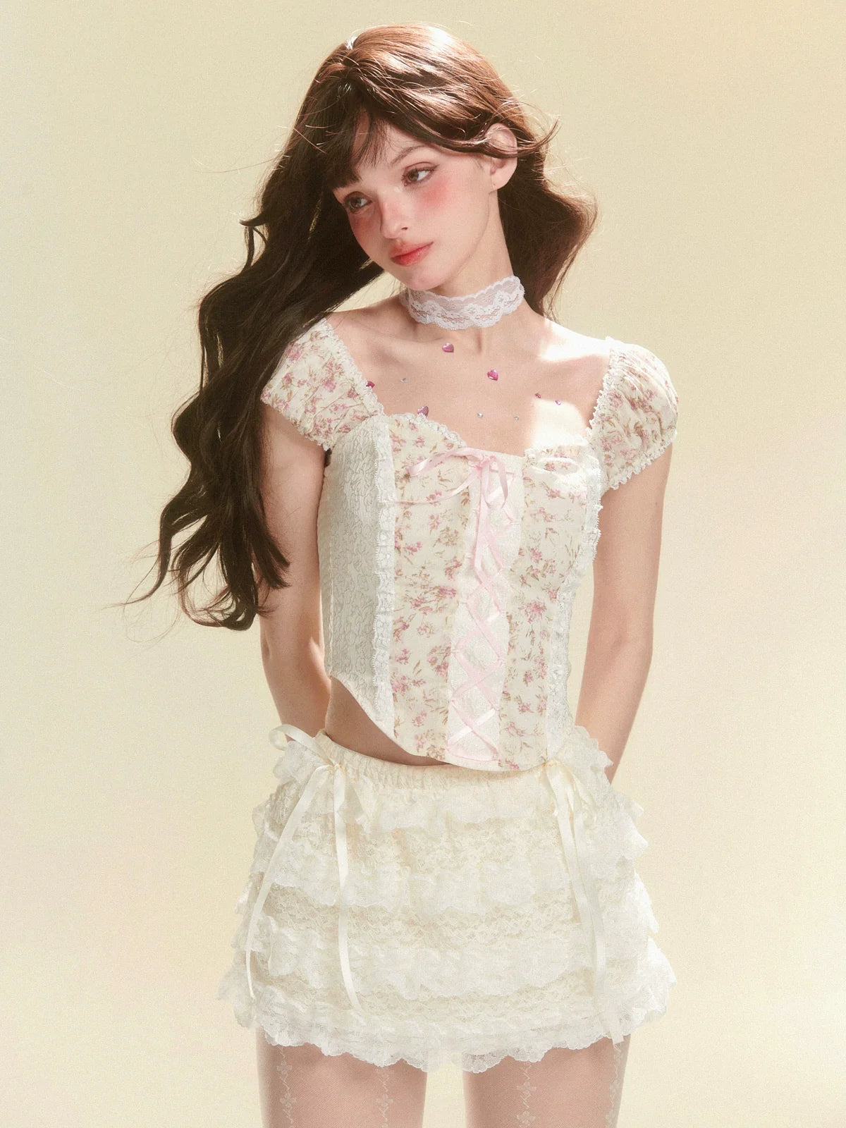 Dieses süße Top mit offenem Halsausschnitt und Blumenschnürung besticht durch zarte Blumenspitzendetails und einen schmeichelhaften offenen Ausschnitt. Perfekt, um jedem Outfit einen Hauch von Süße zu verleihen.