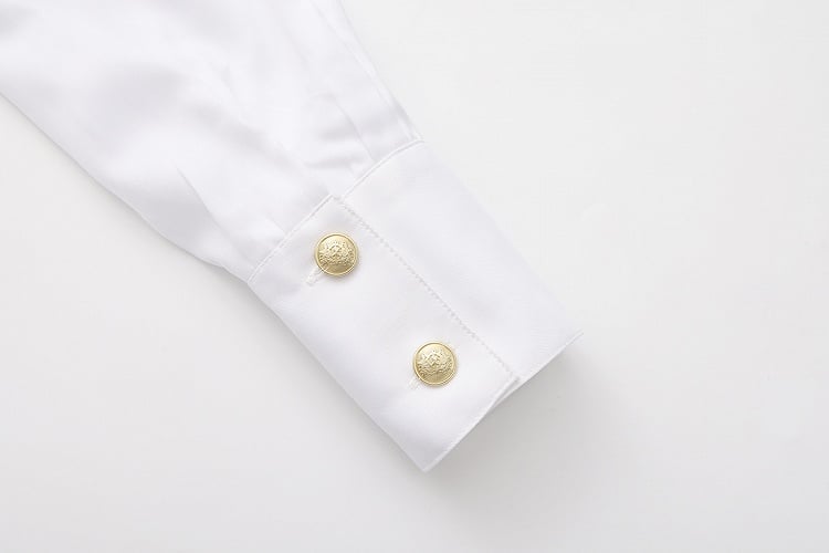 ● Knopfleiste vorne / Goldfarbene Knöpfe / Rüschenbesatz