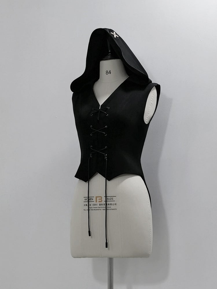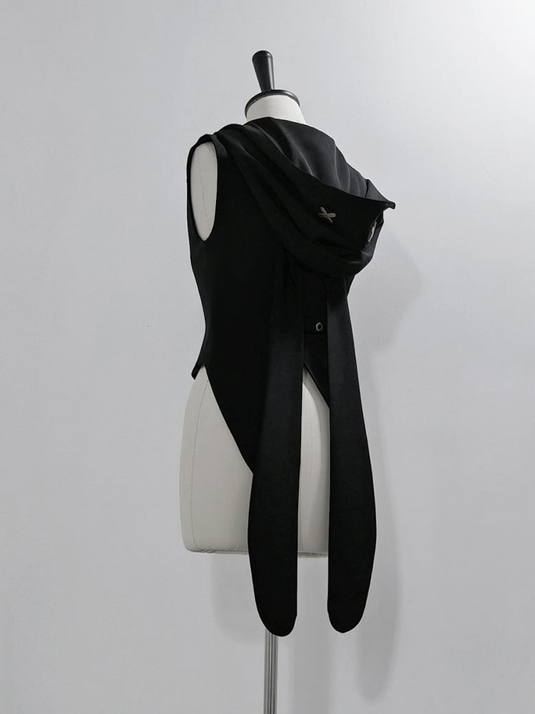 Schwarze Ouji Lolita Oversize-Weste mit Hasenohren und Kapuze