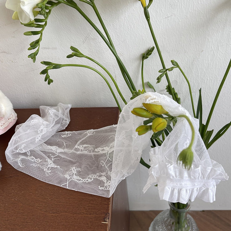 ● Blumendruck / Spitzendetails / Träger zum Selbstbinden / Halbtransparent