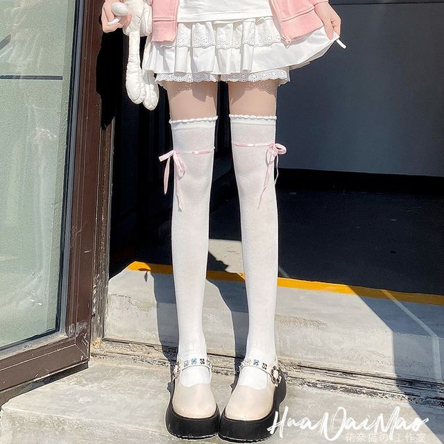 Overknee-Socken mit Schleifenakzent