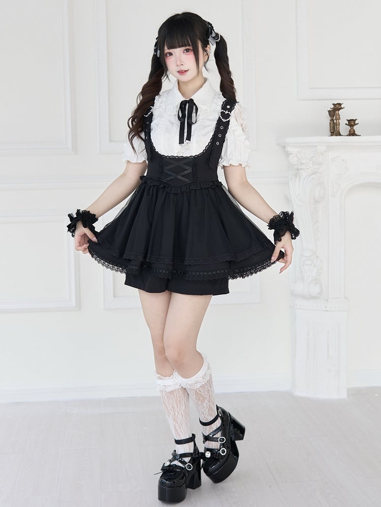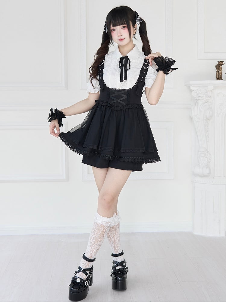Jirai Kei – Schwarzes Overall-Kleid mit baskischer Taille und verstellbaren Schultergurten mit Schnalle
