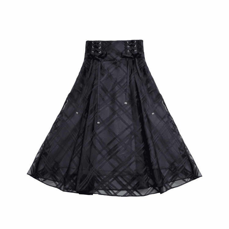 Schwarzer Rock von Jirai Kei mit Schnürdetails an der Taille und kariertem Überzug