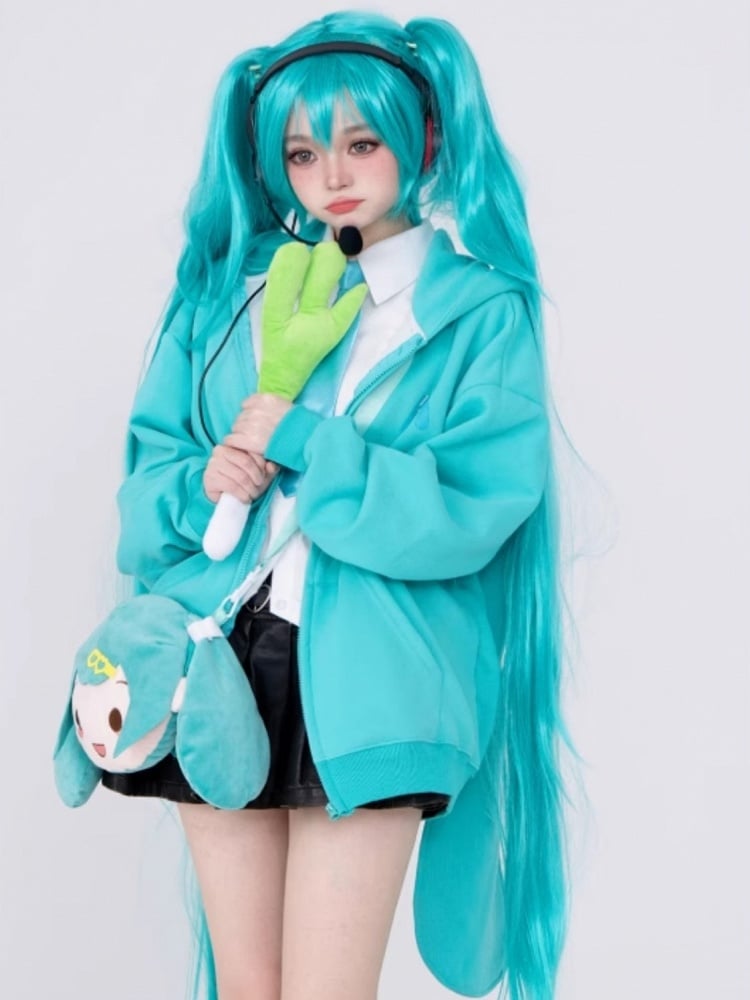Oversized Kapuzenpullover mit grünen Ohren und Hase