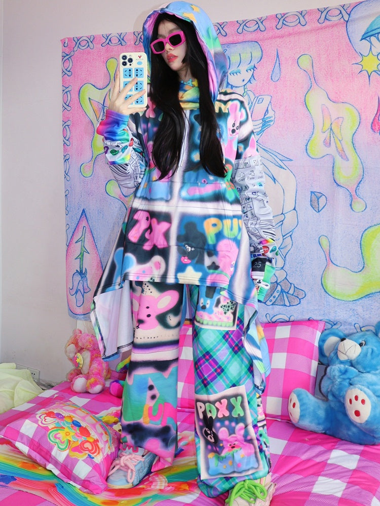 Hosen und Schlaghose Buchstaben Cartoon Muster Silhouette Y2K bunt kariert Print