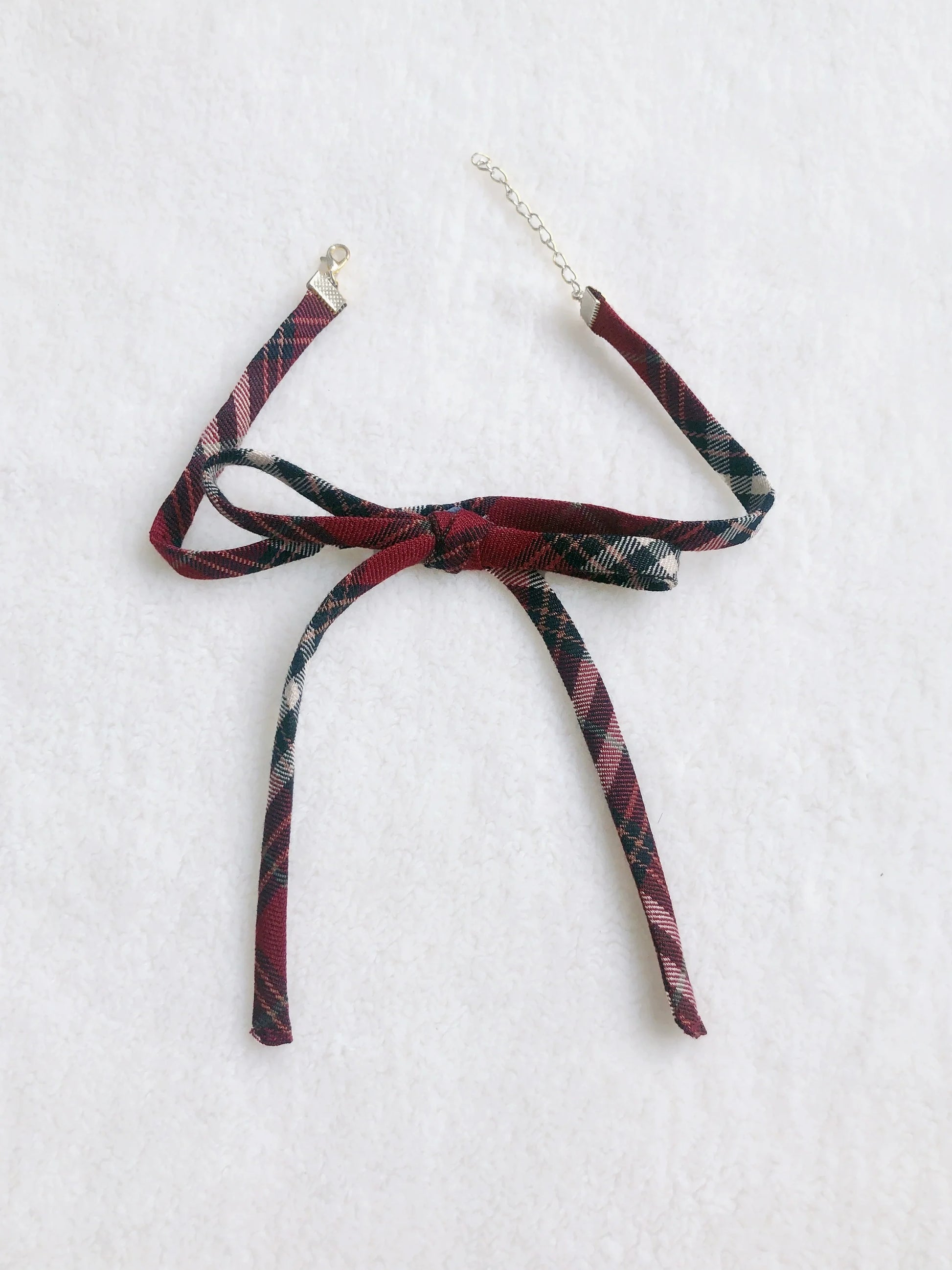 Hose Puff Scottish + Choker Ribbon Puffärmel Cake + Kariertes Kleid Rot