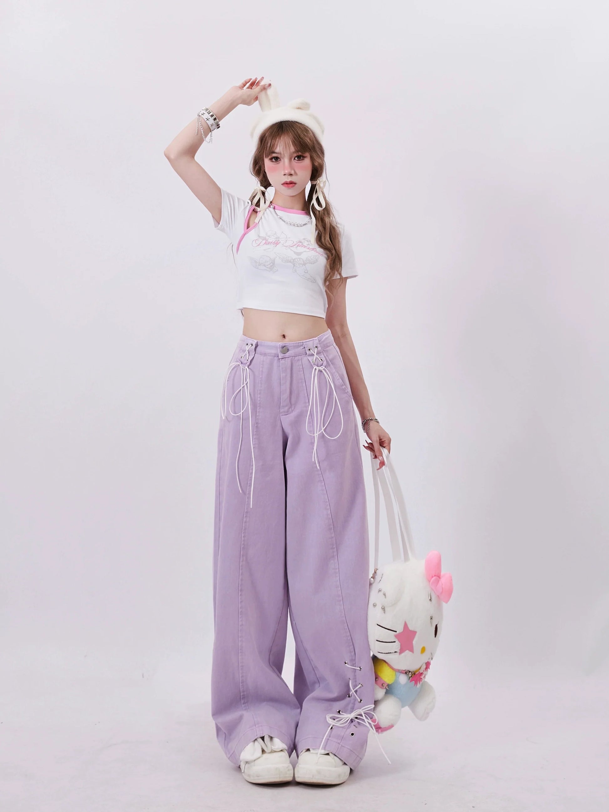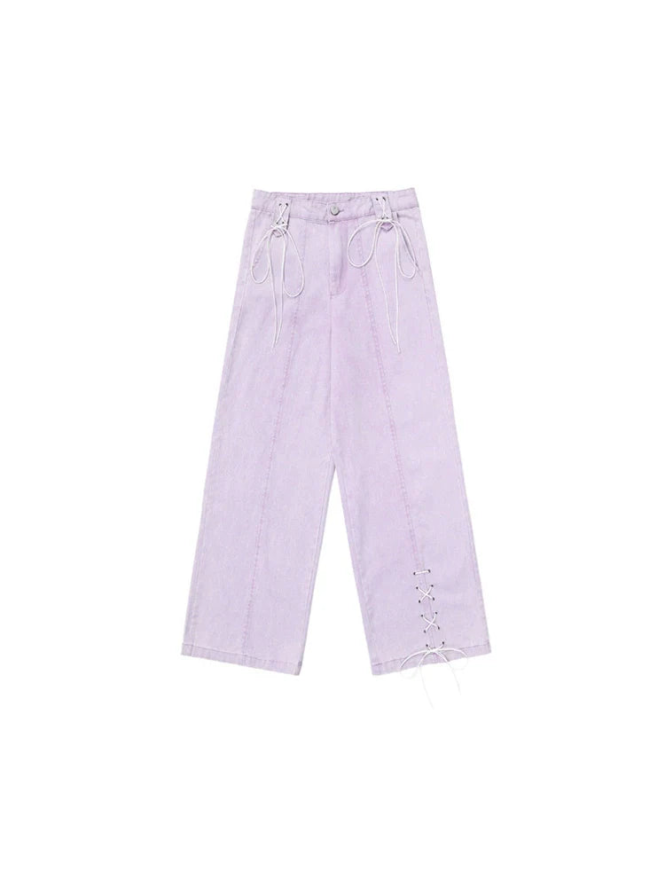 Machen Sie sich bereit, mit dieser bezaubernden lilafarbenen, weiten Schnürhose aus der Masse hervorzustechen! Das zarte Schnürdesign verleiht einen Hauch von Niedlichkeit, während die weite Passform für Komfort und einen lässigen, schicken Look sorgt. Perfekt für jeden Anlass – diese Hose ist ein Must-have in Ihrer Garderobe.