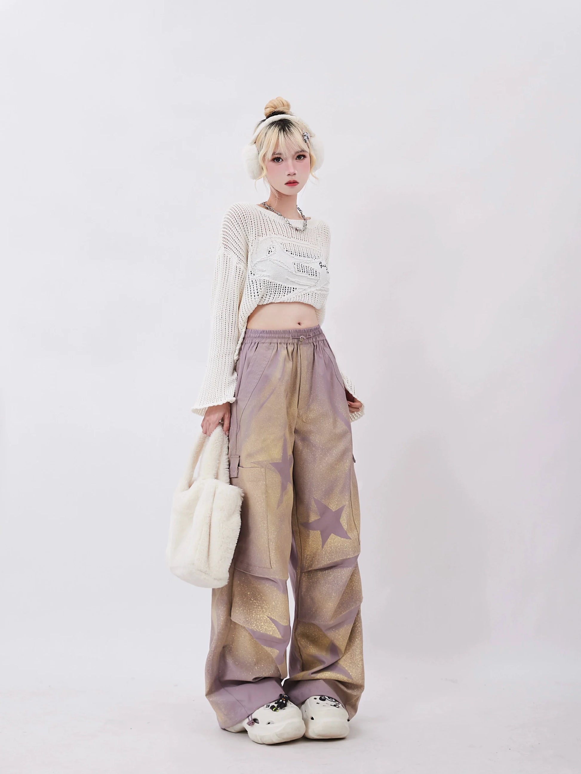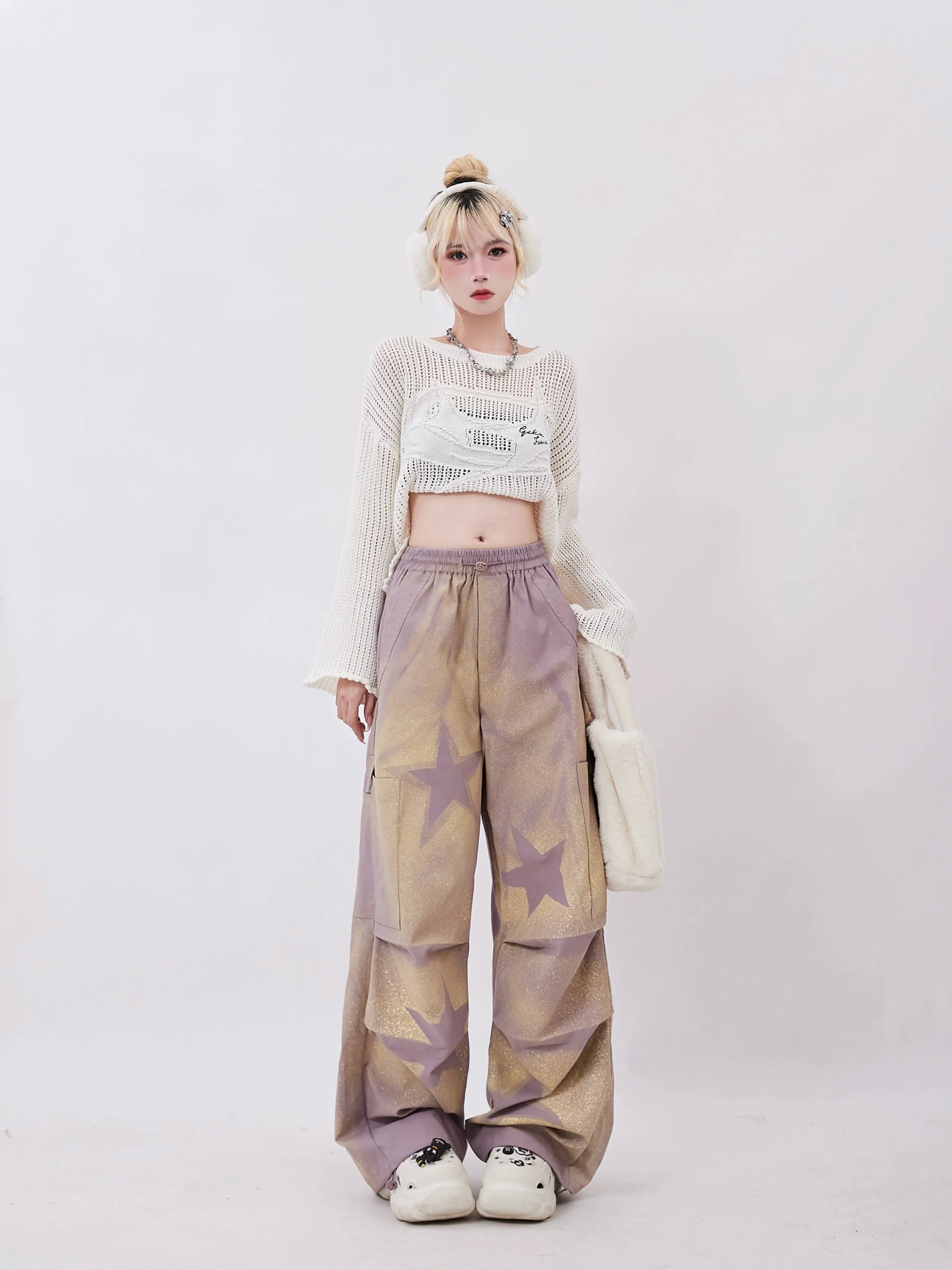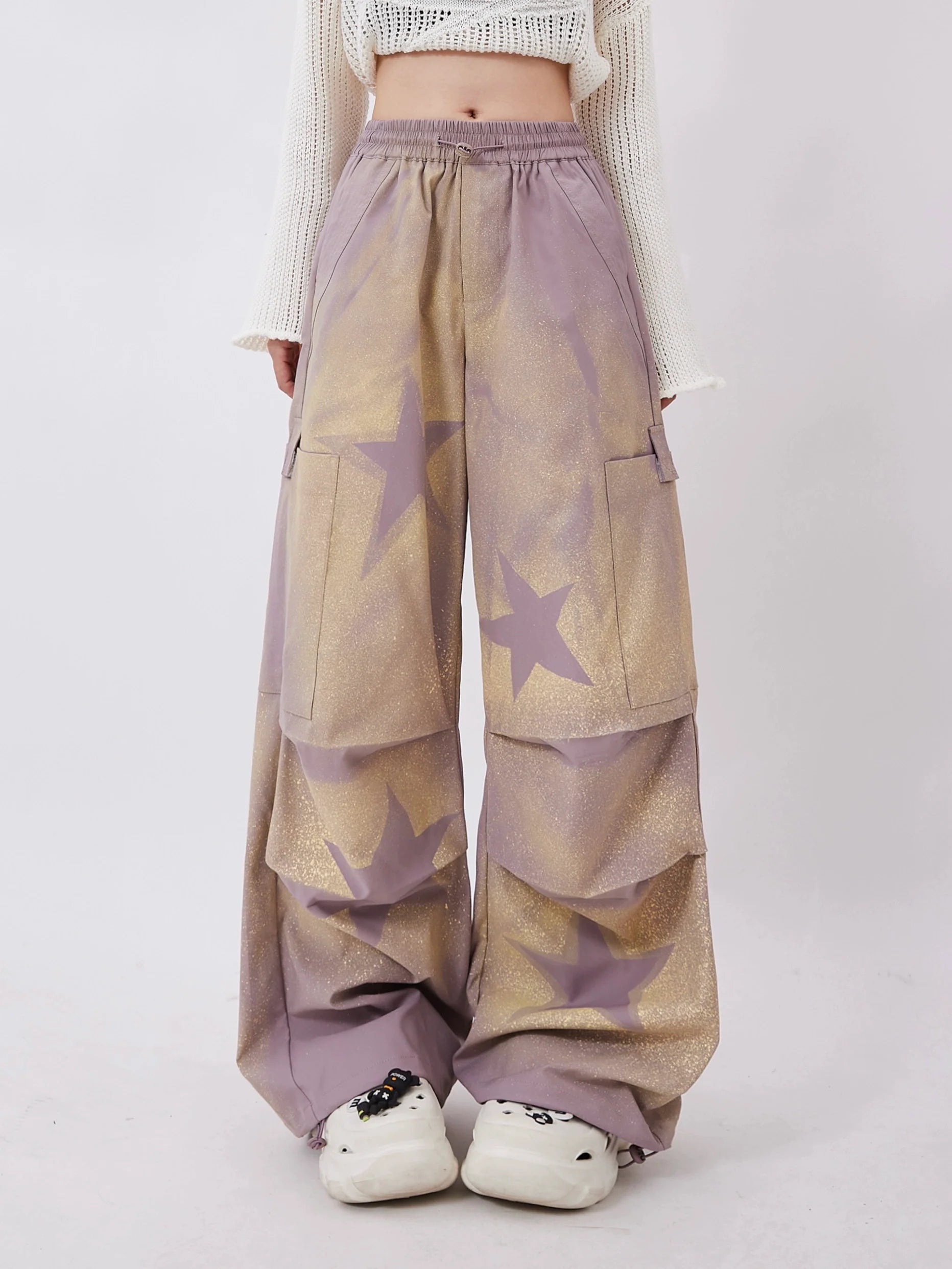 Entfesseln Sie Ihre bezaubernde Seite mit unserer zauberhaften Purple Wide Star Sheer Pants. Diese Hose besticht durch ihr einzigartiges Sternenmuster, das jedem Outfit eine verspielte Note verleiht. Der transparente Stoff bietet Atmungsaktivität und Komfort. Perfekt für einen süßen und bequemen Look.