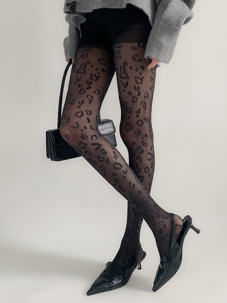 Retro Glitter Leopard Print Sheer Pantyhose