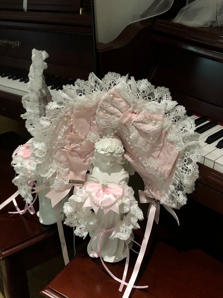 Pearl Lace White Blue Pink Lolita with Details / Bonnet and
